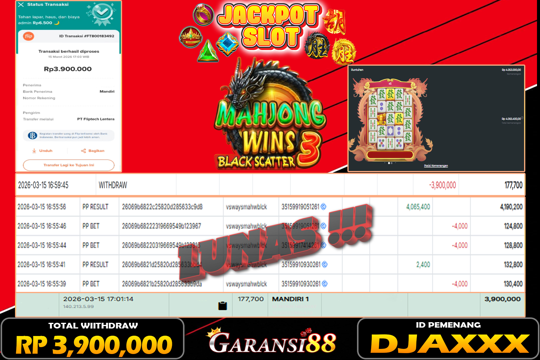 JACKPOT MAHJONG WINS BLACK SCATTER 15 MARET 2026