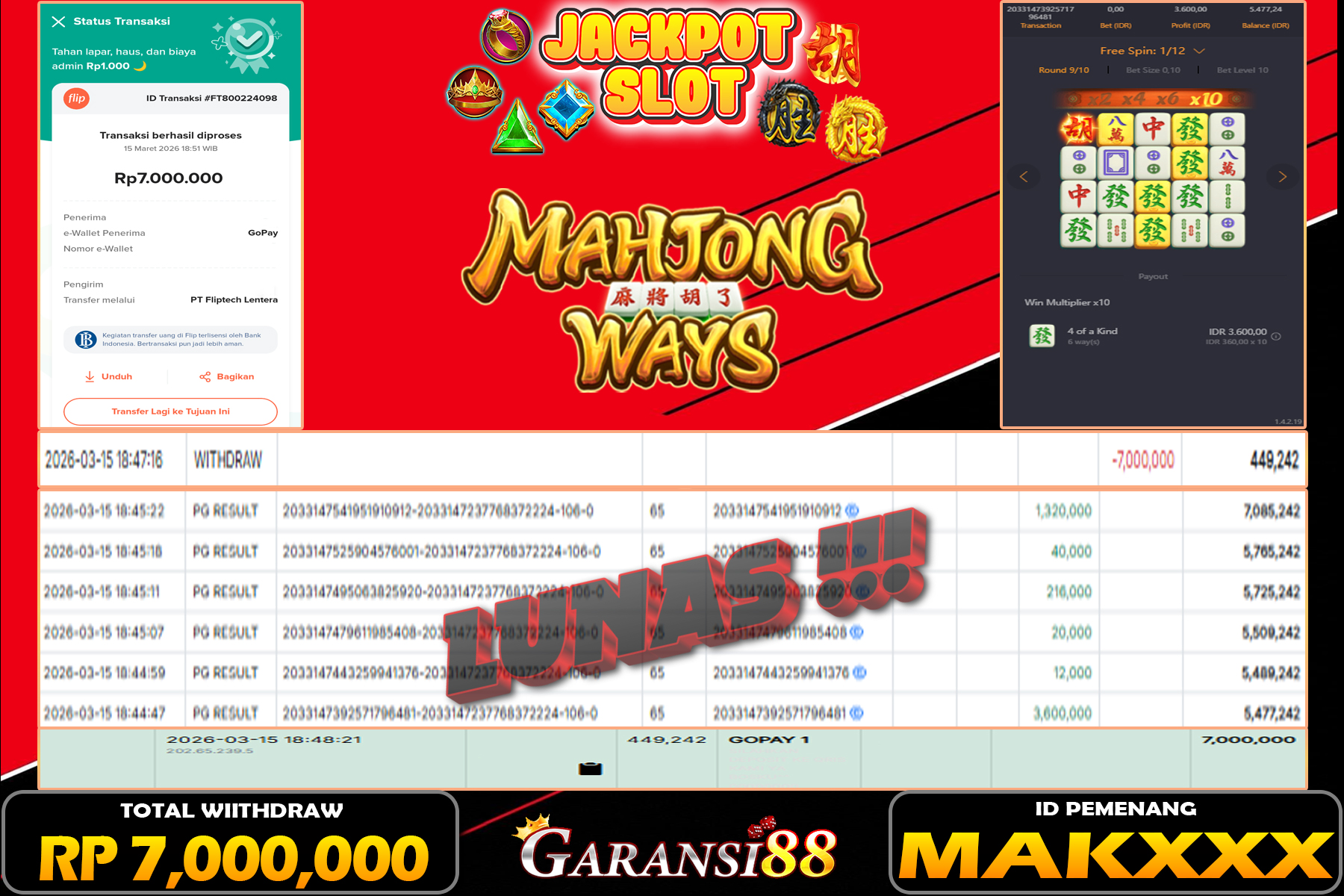 JACKPOT MAHJONG WAYS 15 MARET 2026