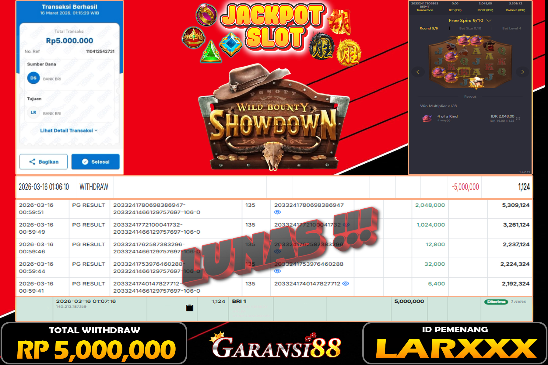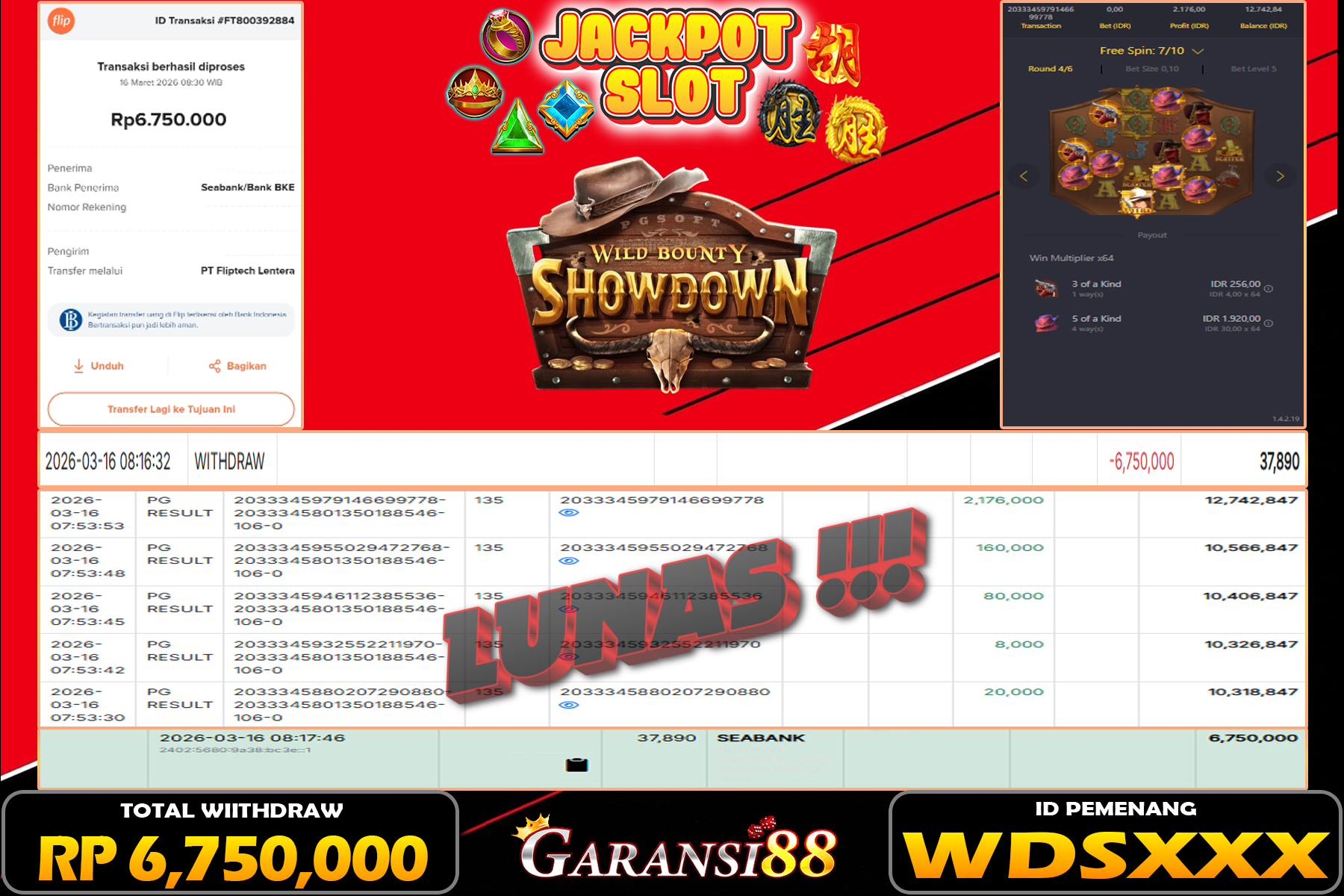 JACKPOT WILD BOUNTY SHODOWN 16 MARET 2026