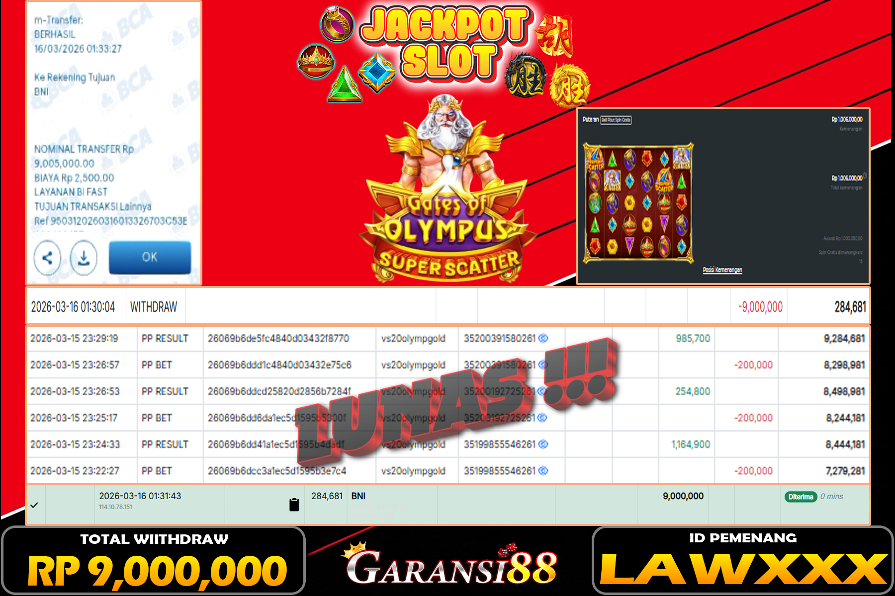 JACKPOT GATES OF OLYMPUS 16 MARET 2026