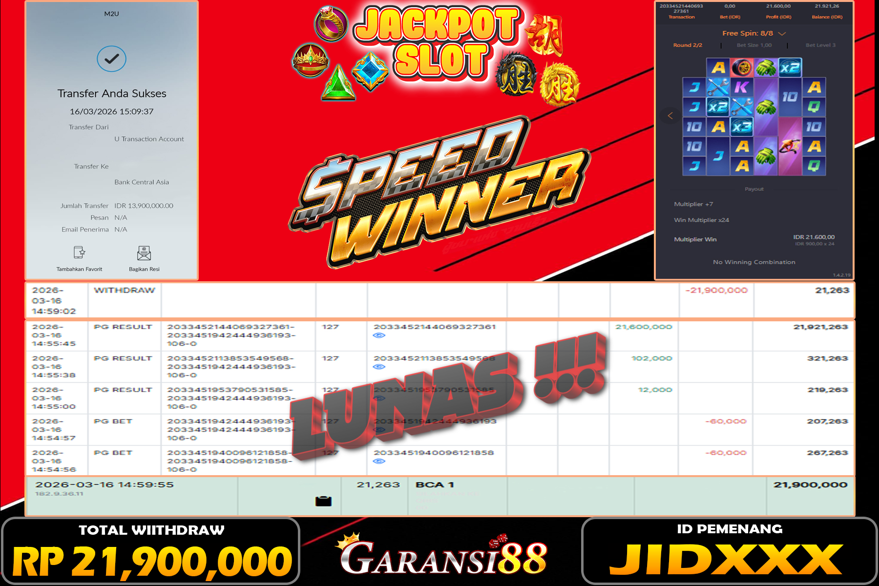 JACKPOT SPEED WINNER 16 MARET 2026