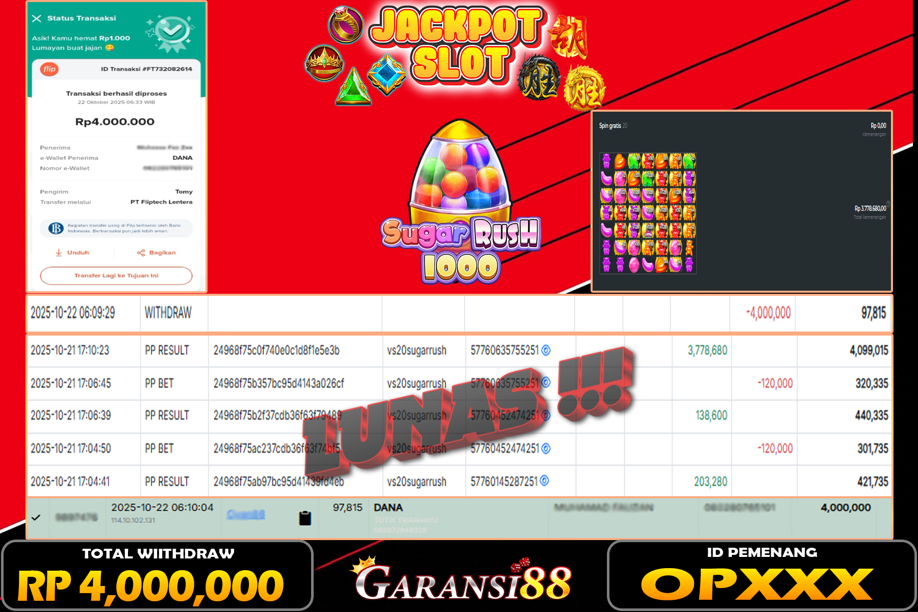 JACKPOT SUGAR RUSH 1000 22 OKTOBER 2025