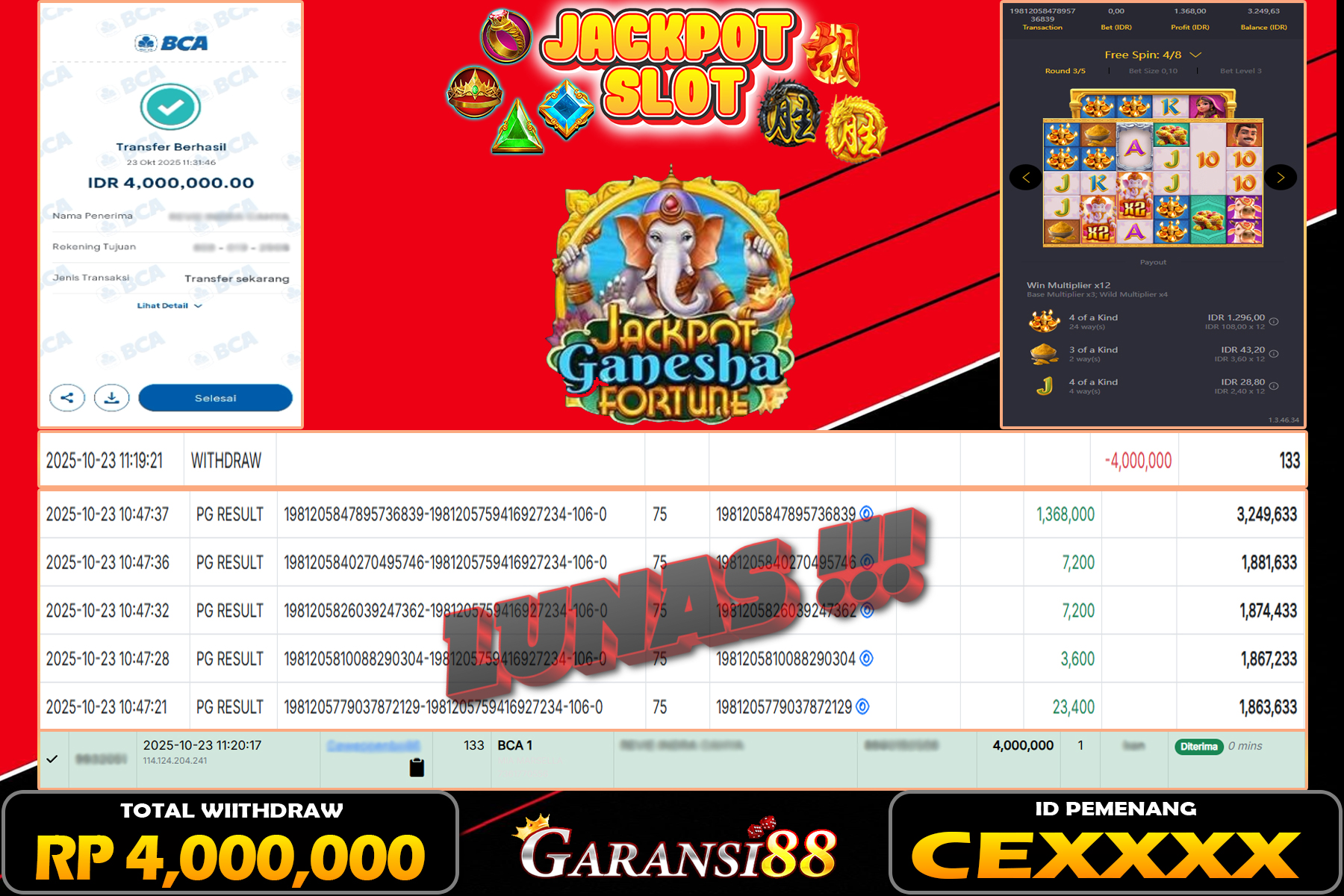 JACKPOT GANESHA FORTUNE 23 OKTOBER 2025