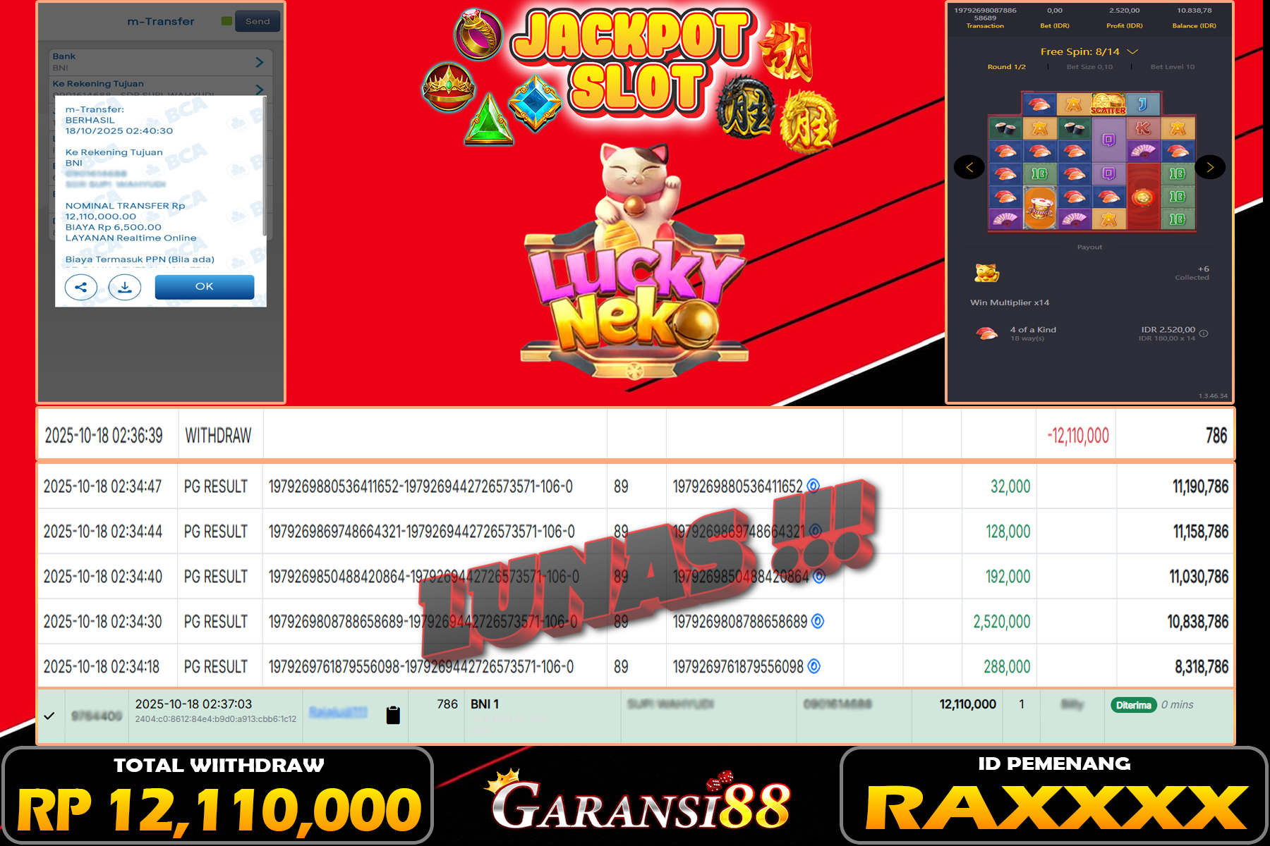 JACKPOT LUCKY NEKO 18 OKTOBER 2025