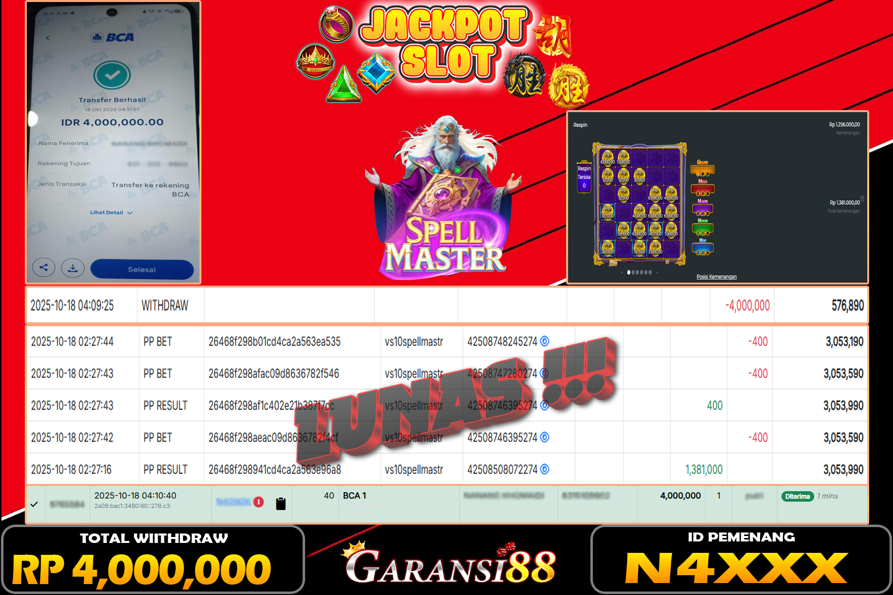 JACKPOT SPELLMASTER 18 OKTOBER 2025