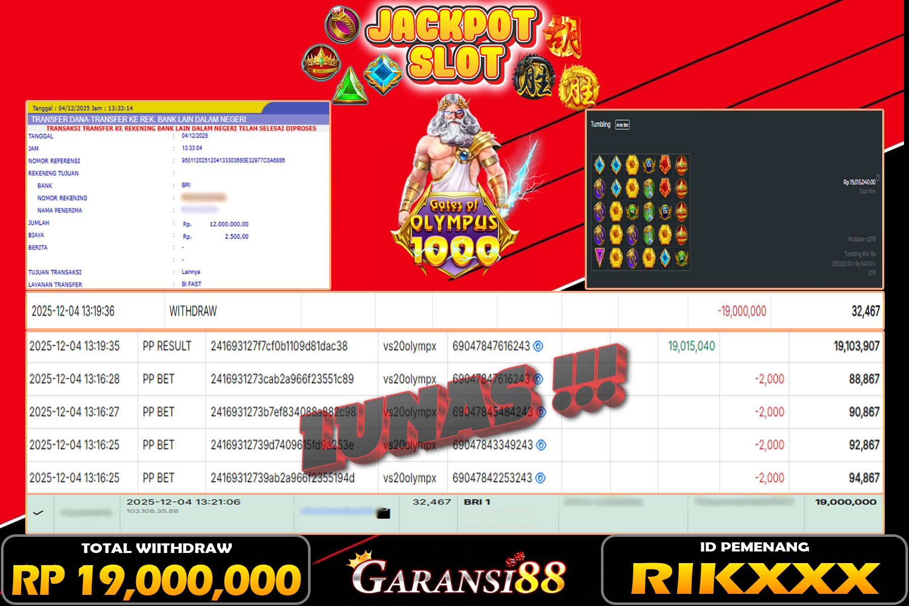 JACKPOT GATES OF OLYMPUSH 1000 04 DESEMBER 2025