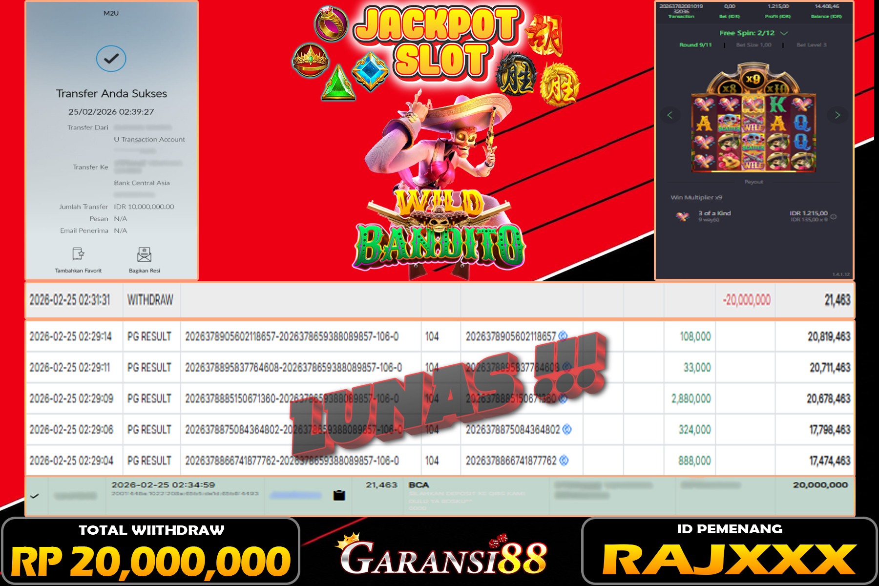JACKPOT WILD BANDITO 25 FEBRUARI 2026