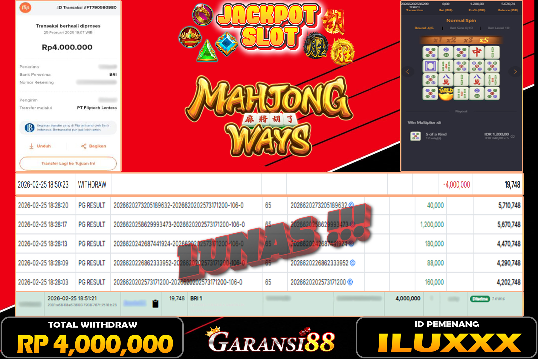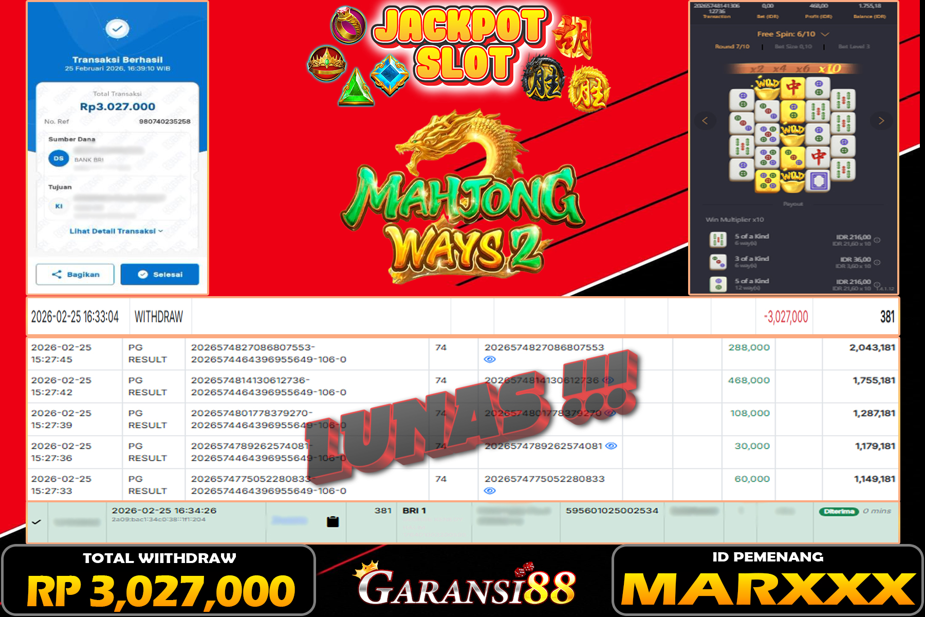JACKPOT MAHJONG WAYS 25 FEBRUARI 2026
