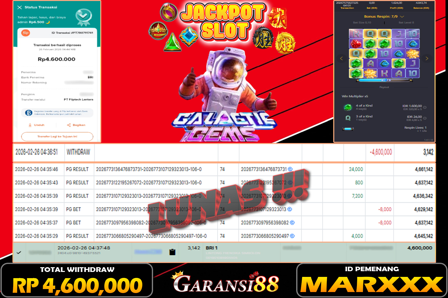 JACKPOT GALACTIC GEMS 26 FEBRUARI 2026