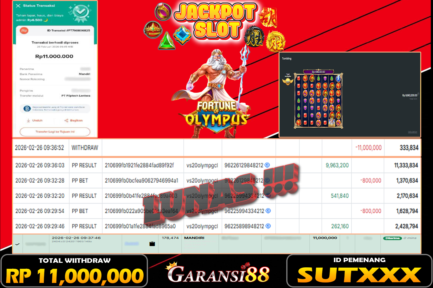 JACKPOT FORTUNE OF OLYMPUS 26 FEBRUARI 2026