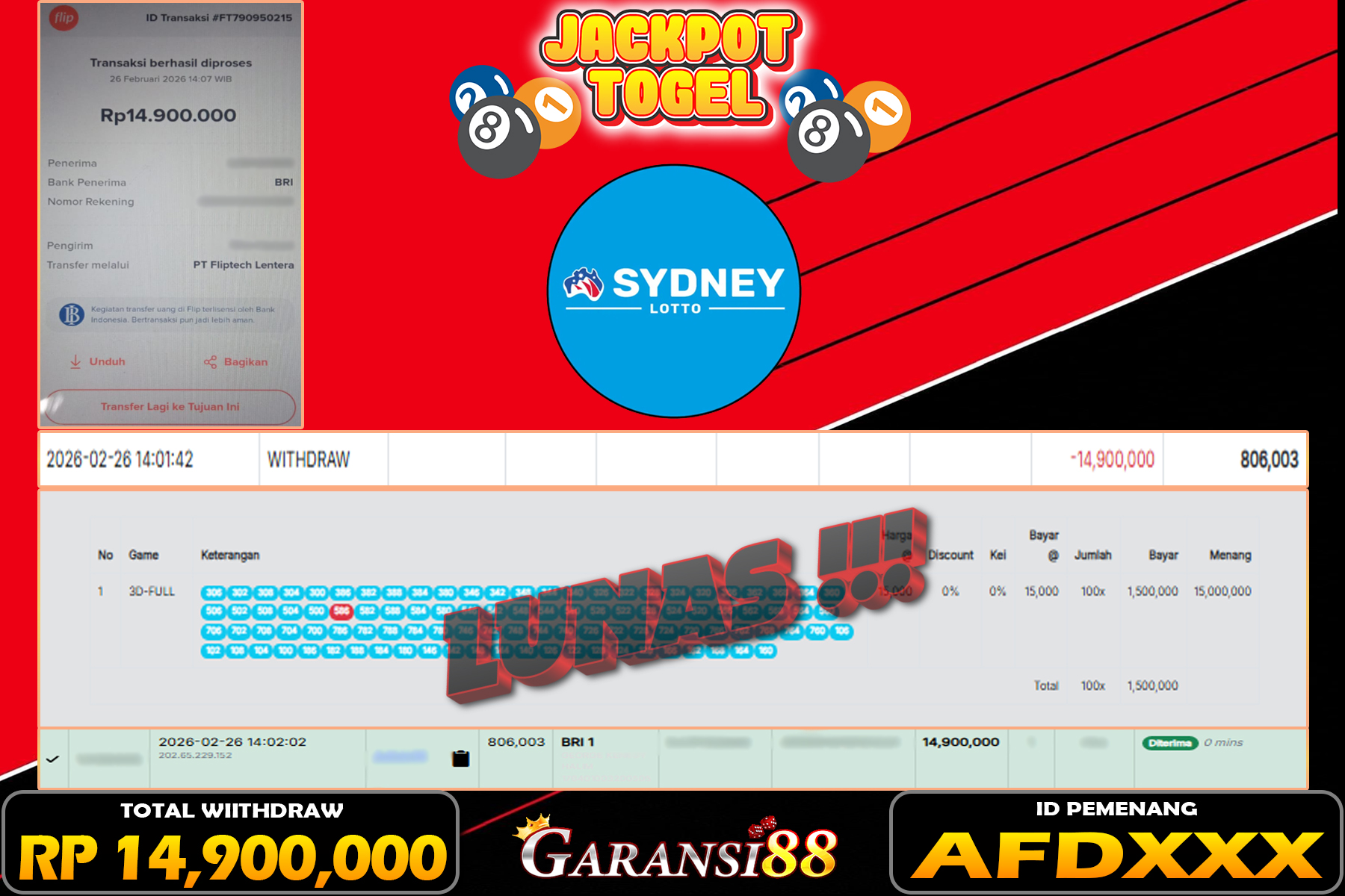 JACKPOT TOGEL SYDNEY LOTTO 26 FEBRUARI 2026