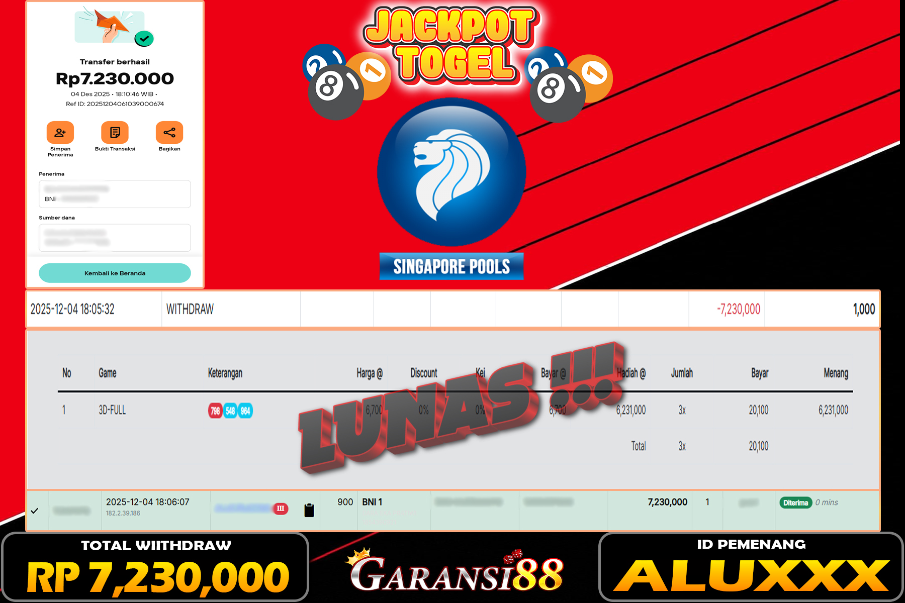 JACKPOT TOGEL SINGAPORE POOLS 04 DESEMBER 2025