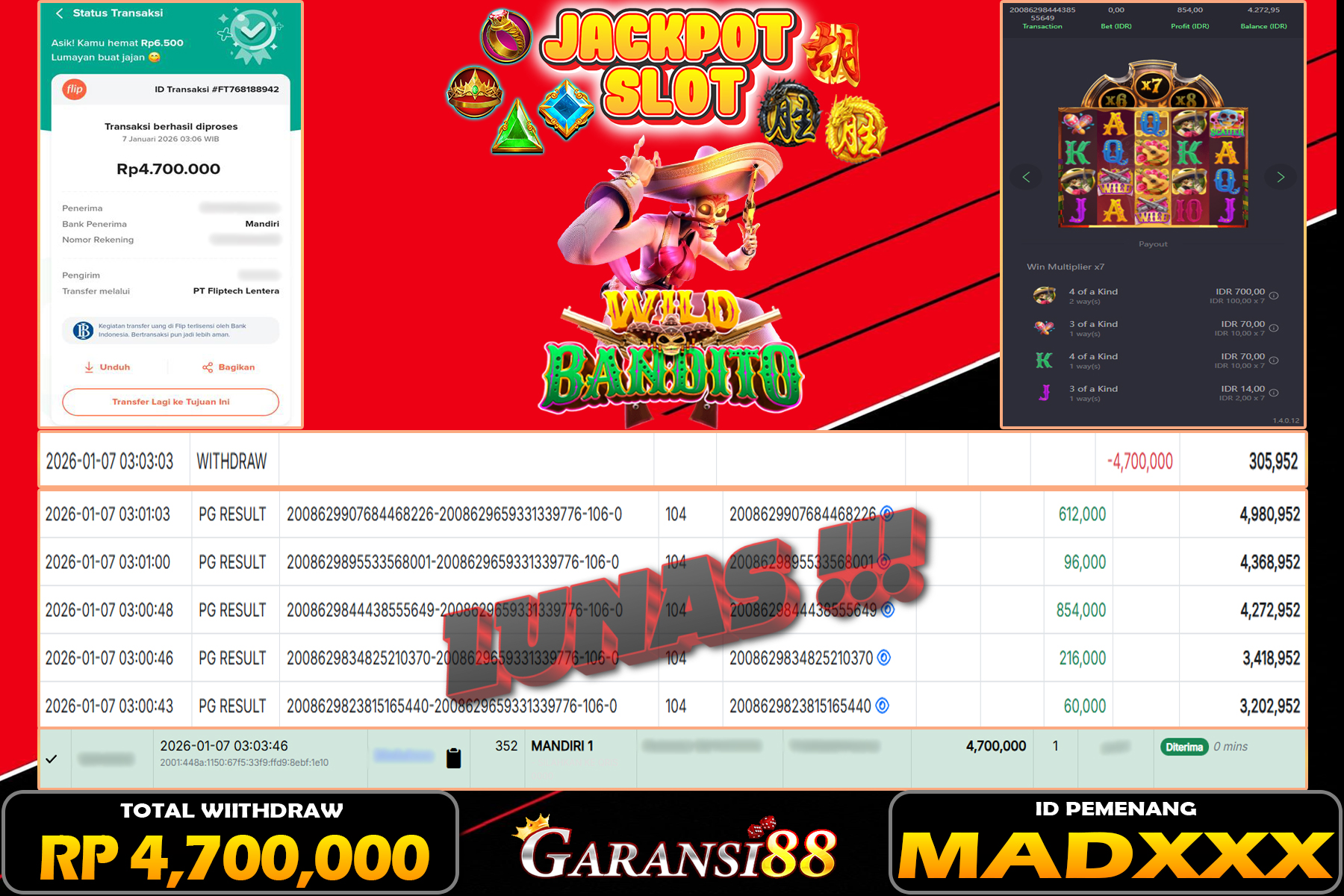 JACKPOT WILD BANDITO 07 JANUARI 2026