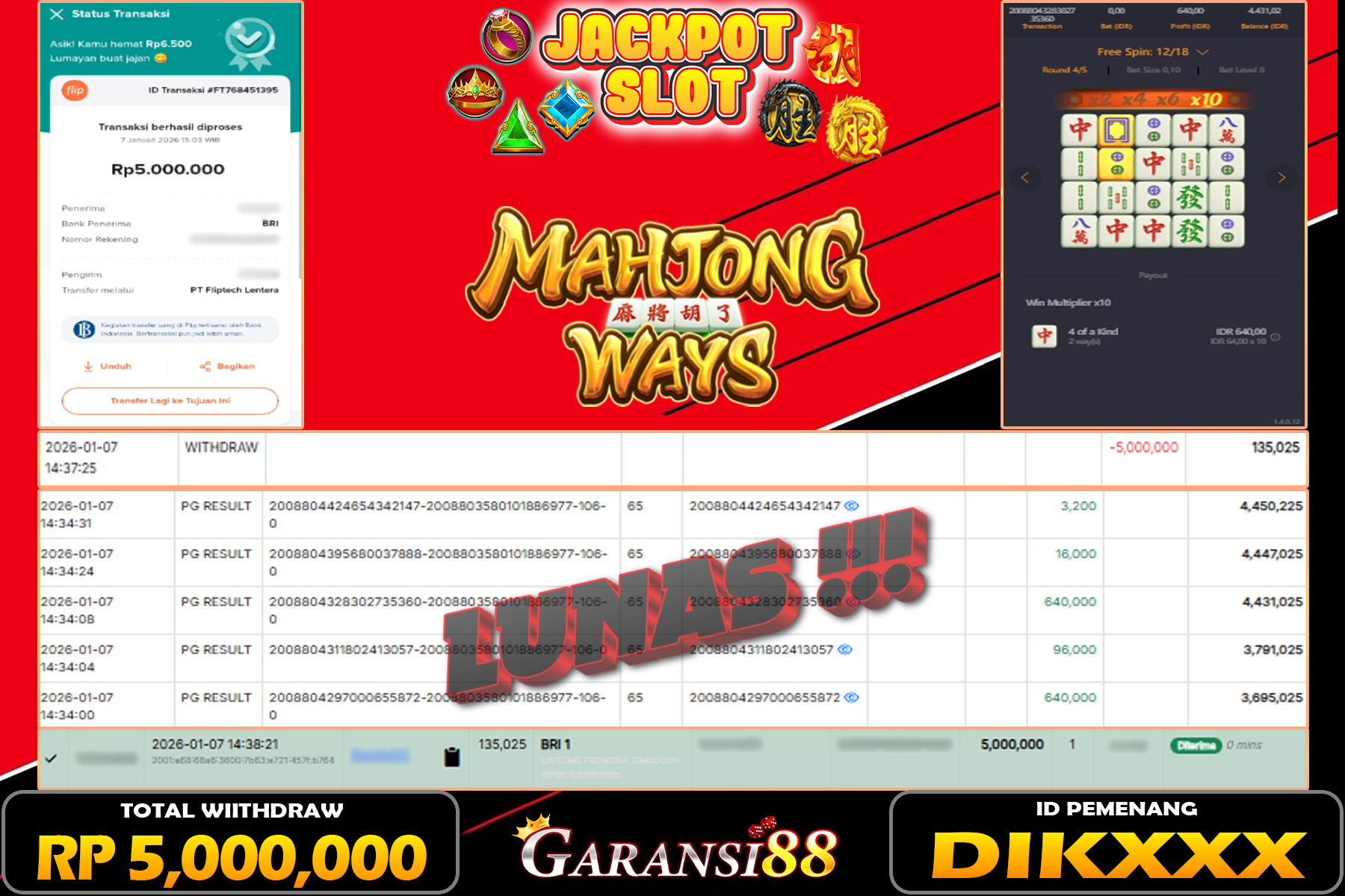 JACKPOT MAHJONG WAYS 07 JANUARI 2026