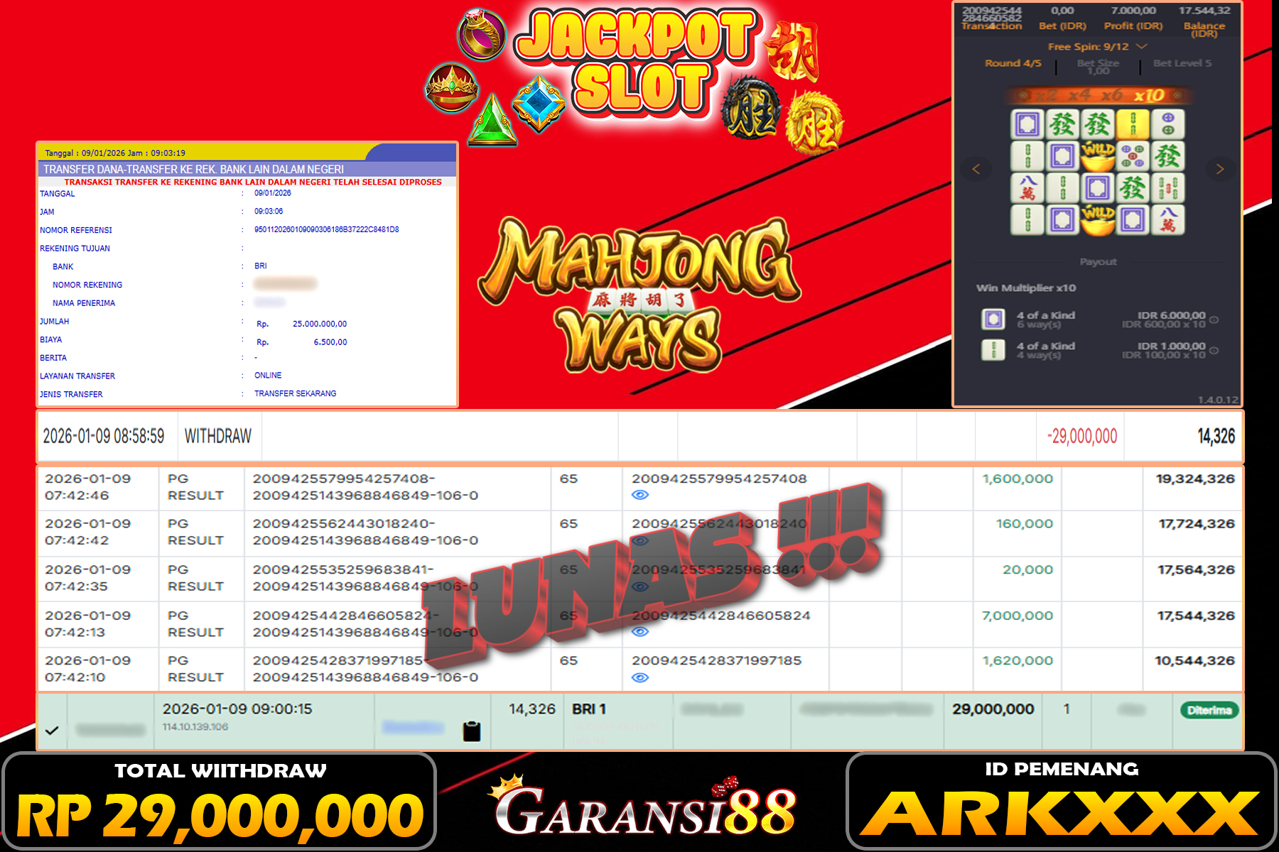 JACKPOT MAHJONG WAYS 09 JANUARI 2026