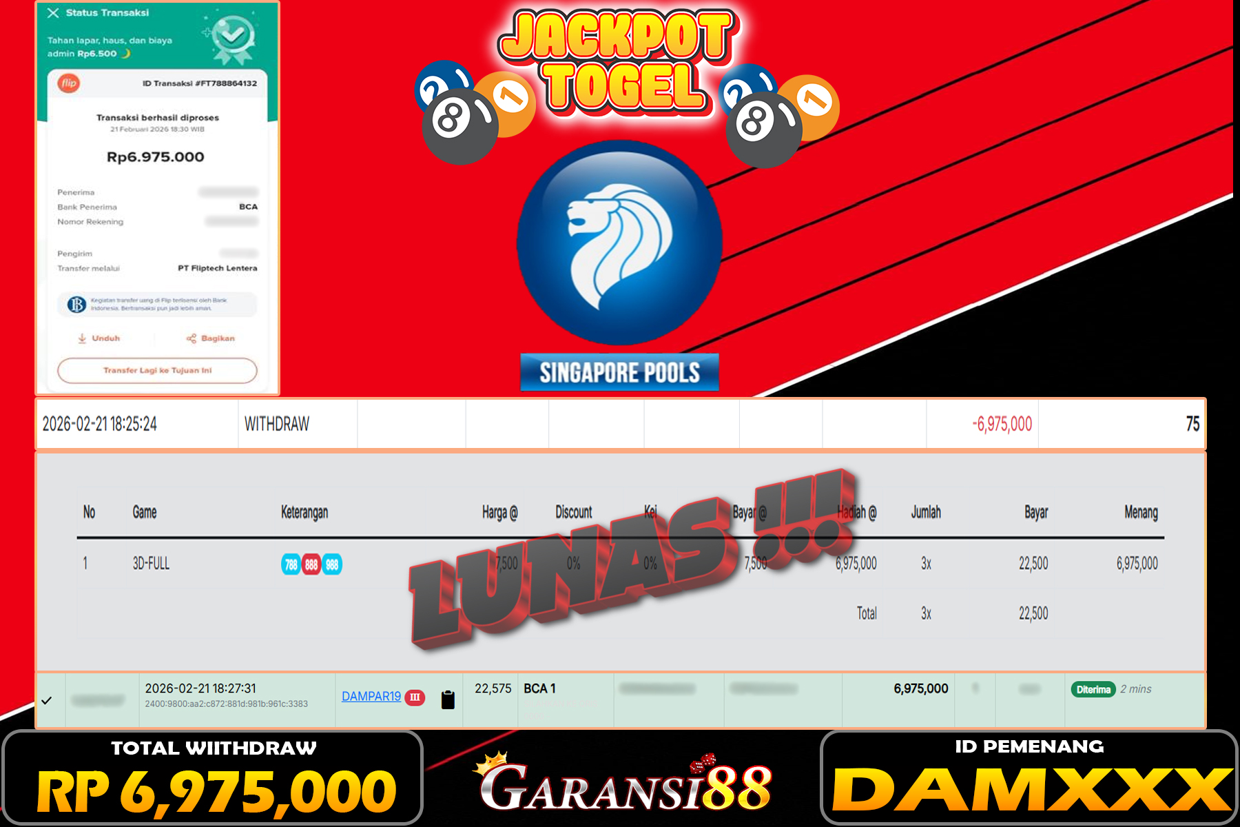 JACKPOT TOGEL SINGAPORE POOLS 21 FEBRUARI 2026