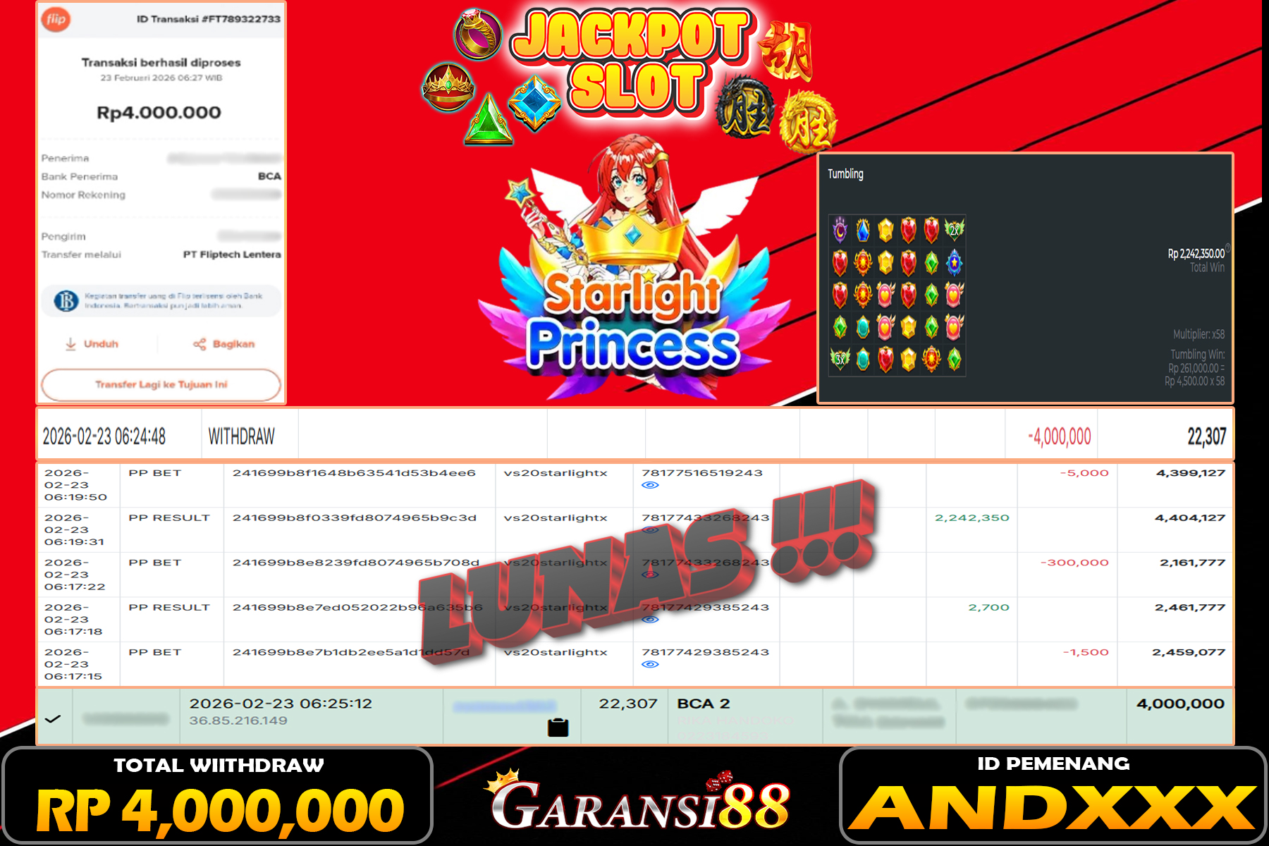 JACKPOT STARLIGHT PRINCESS 23 FEBRUARI 2026
