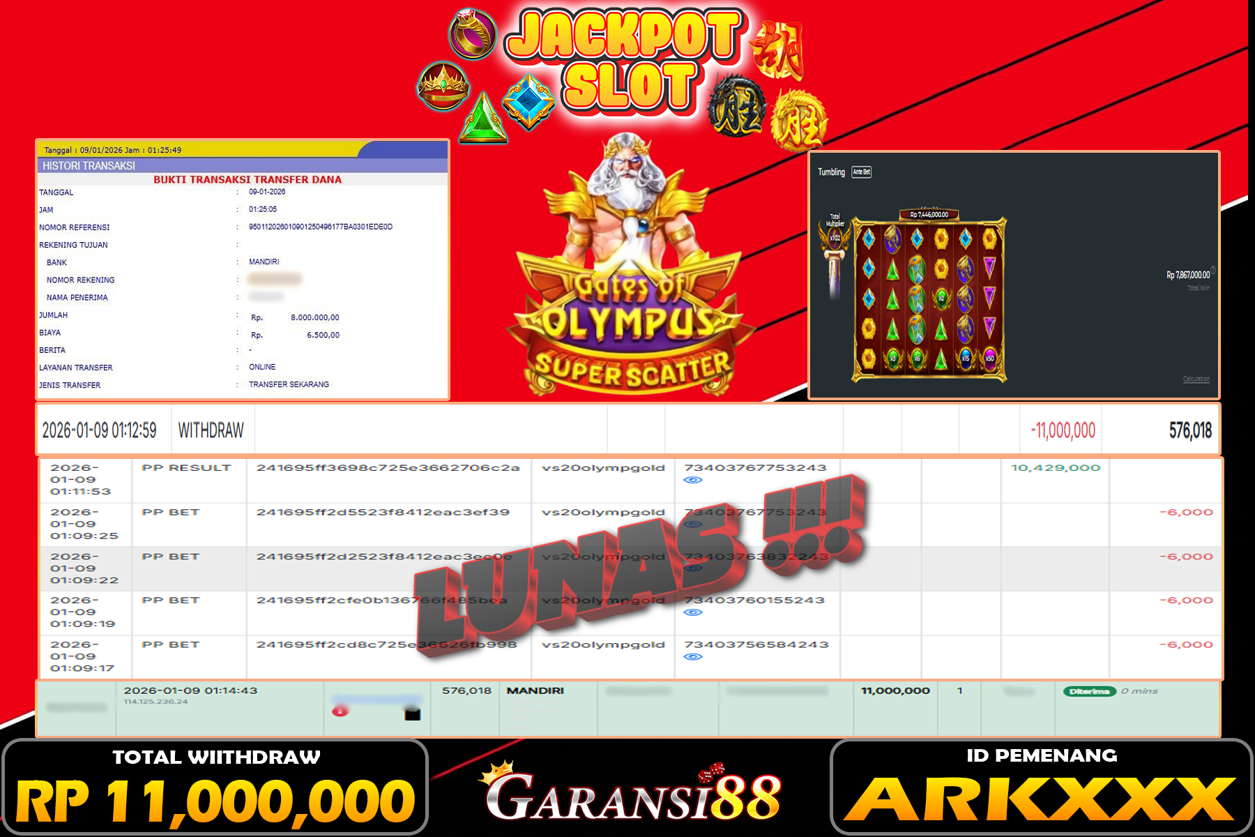 JACKPOT GATES OF OLYMPUS SEUPER SCATTER 09 JANUARI 2026