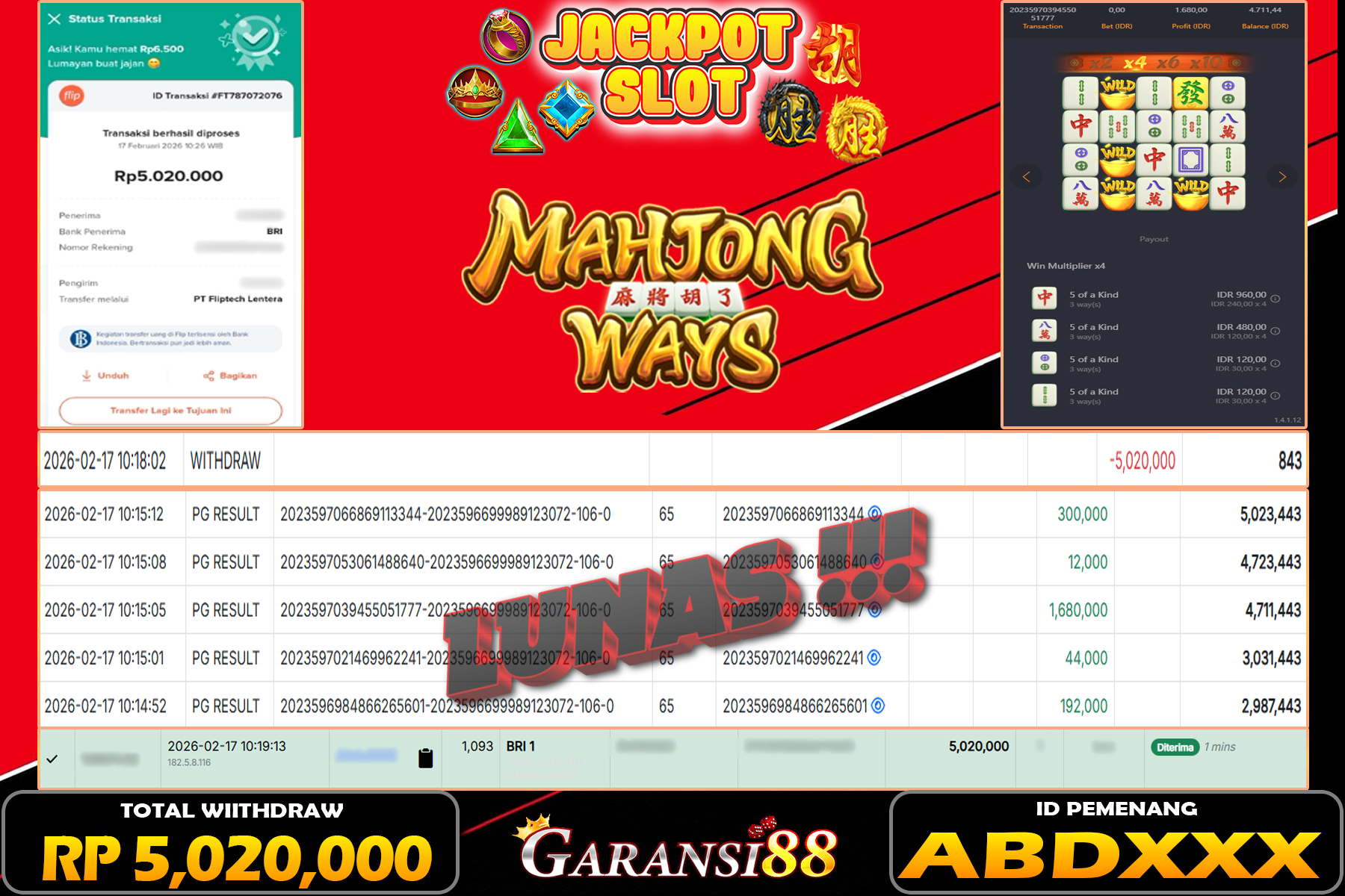 JACKPOT MAHJONG WAYS 17 FEBRUARI 2026