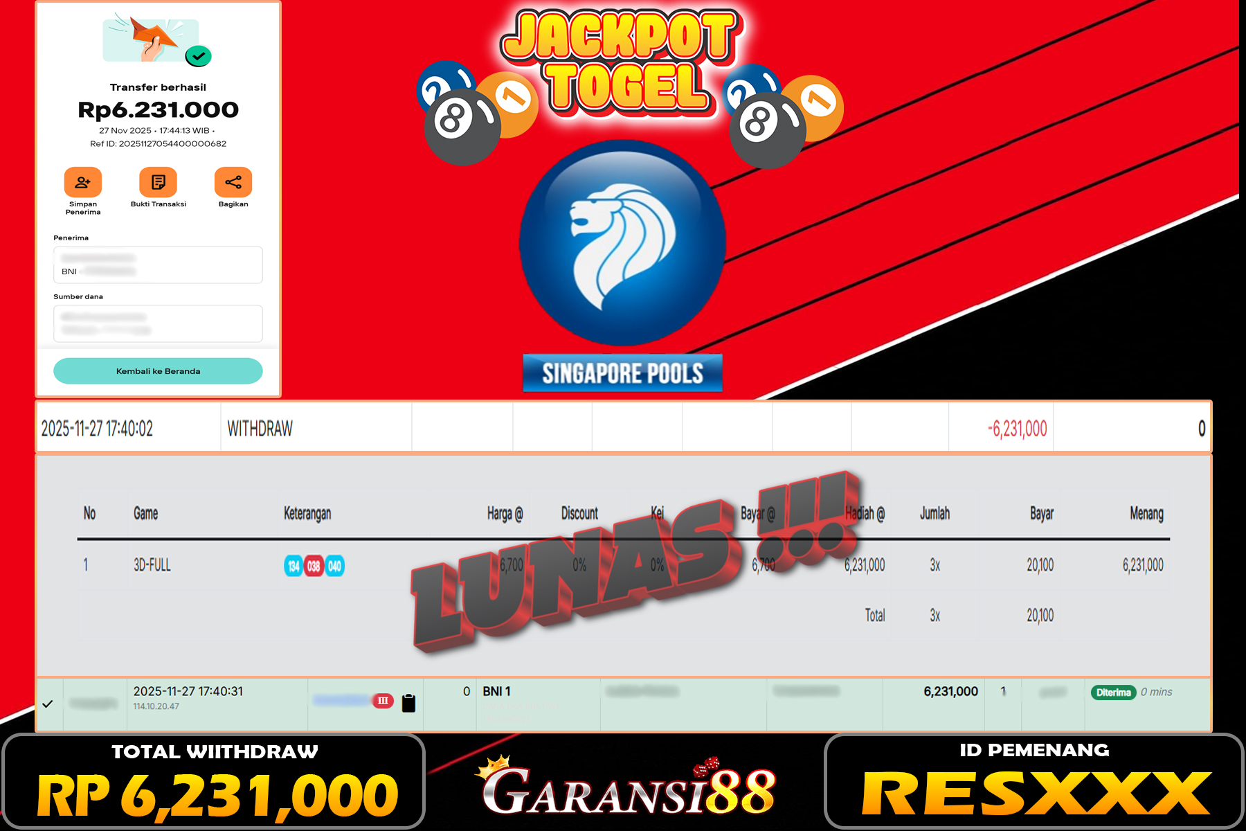 JACKPOT TOGEL SINGAPORE POOLS 27 NOVEMBER 2025