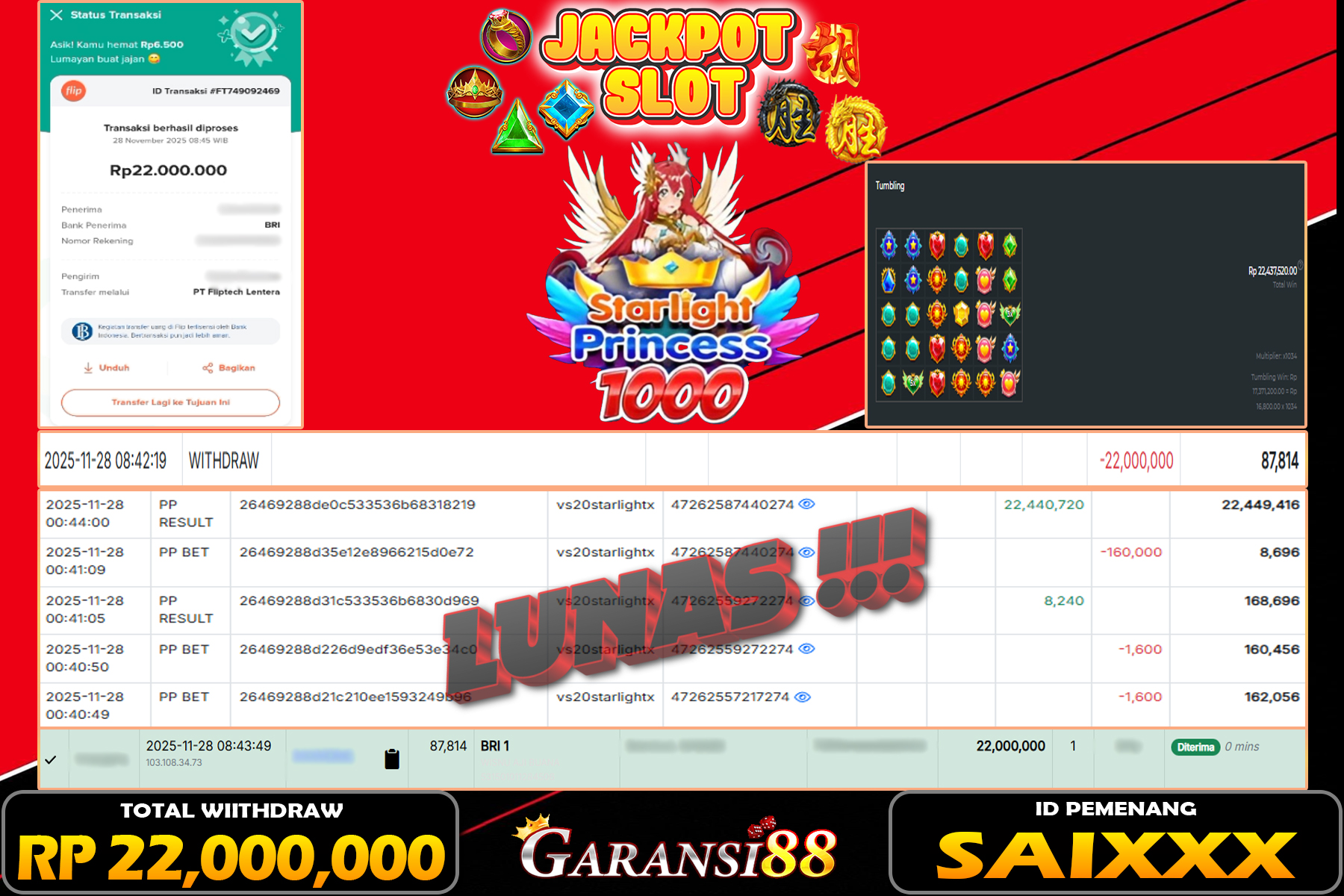 JACKPOT STARLIGHT PRINCESS 1000 28 NOVEMBER 2025