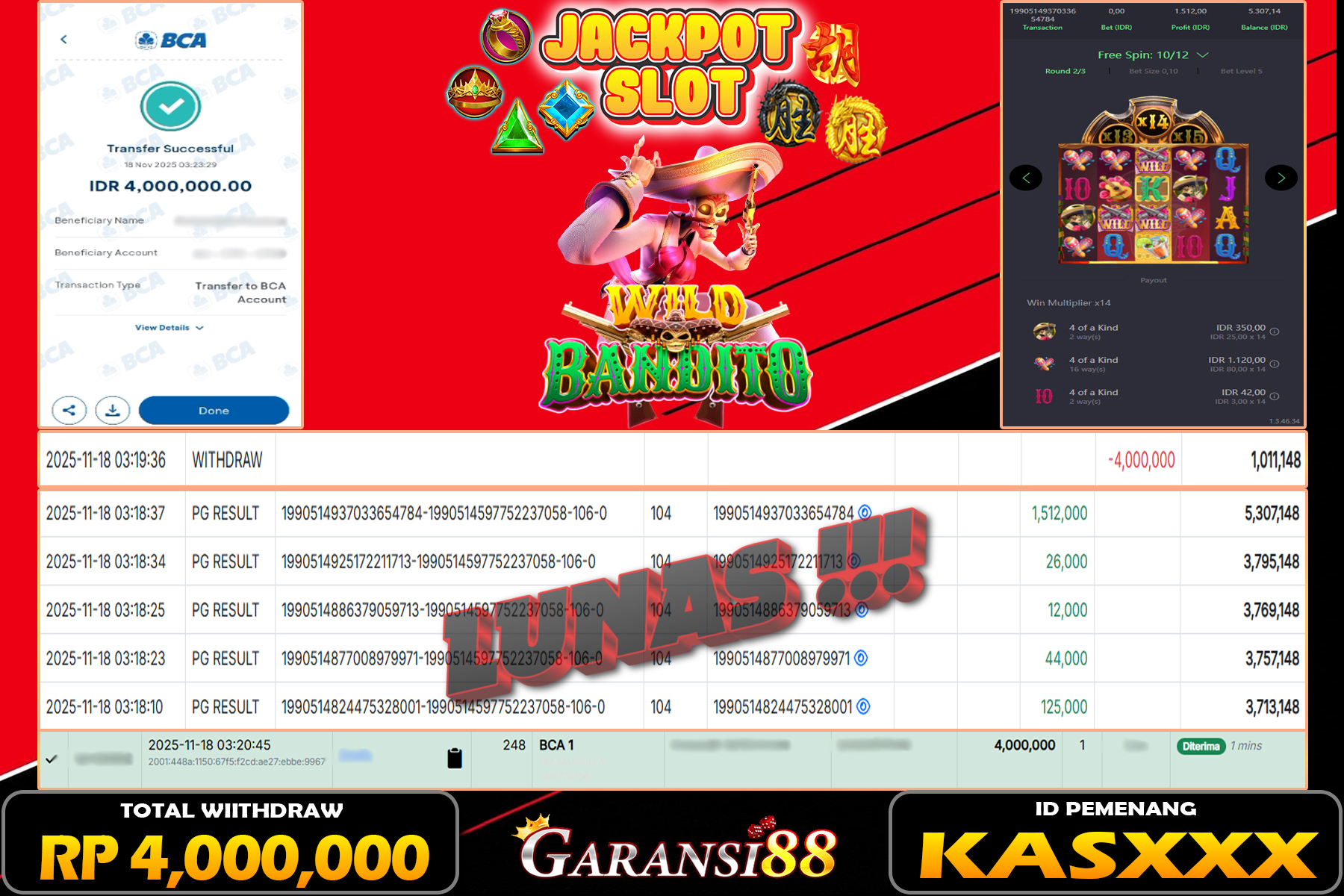 JACKPOT WILD BANDITO 18 NOVEMBER 2025
