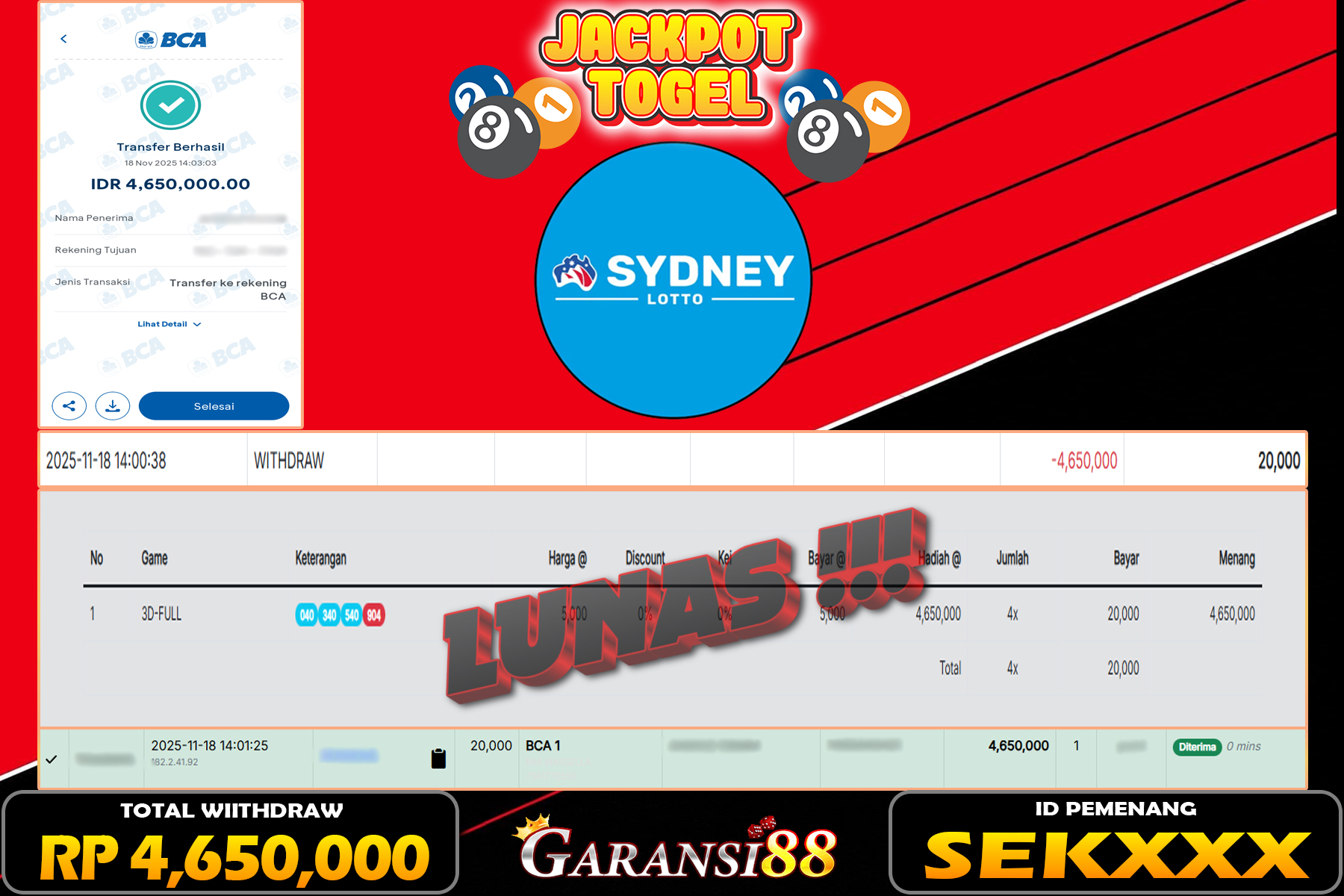 JACKPOT TOGEL SYEDNEY LOTTO 18 NOVEMBER 2025