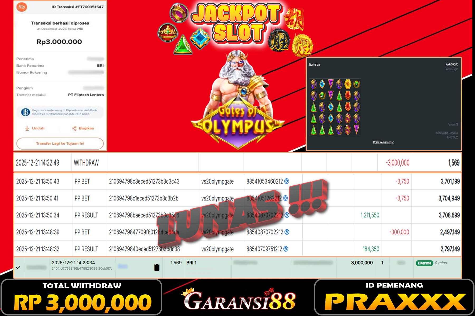 JACKPOT GATES OF OLYMPUS 21 DESEMBER 2025
