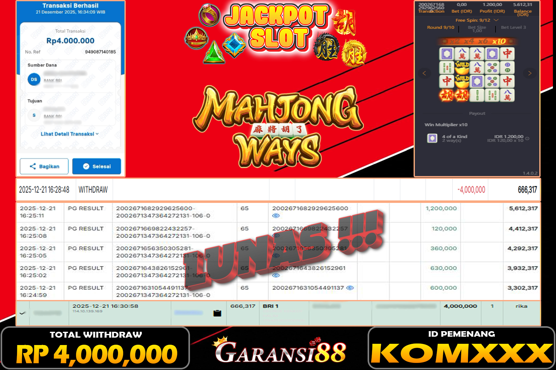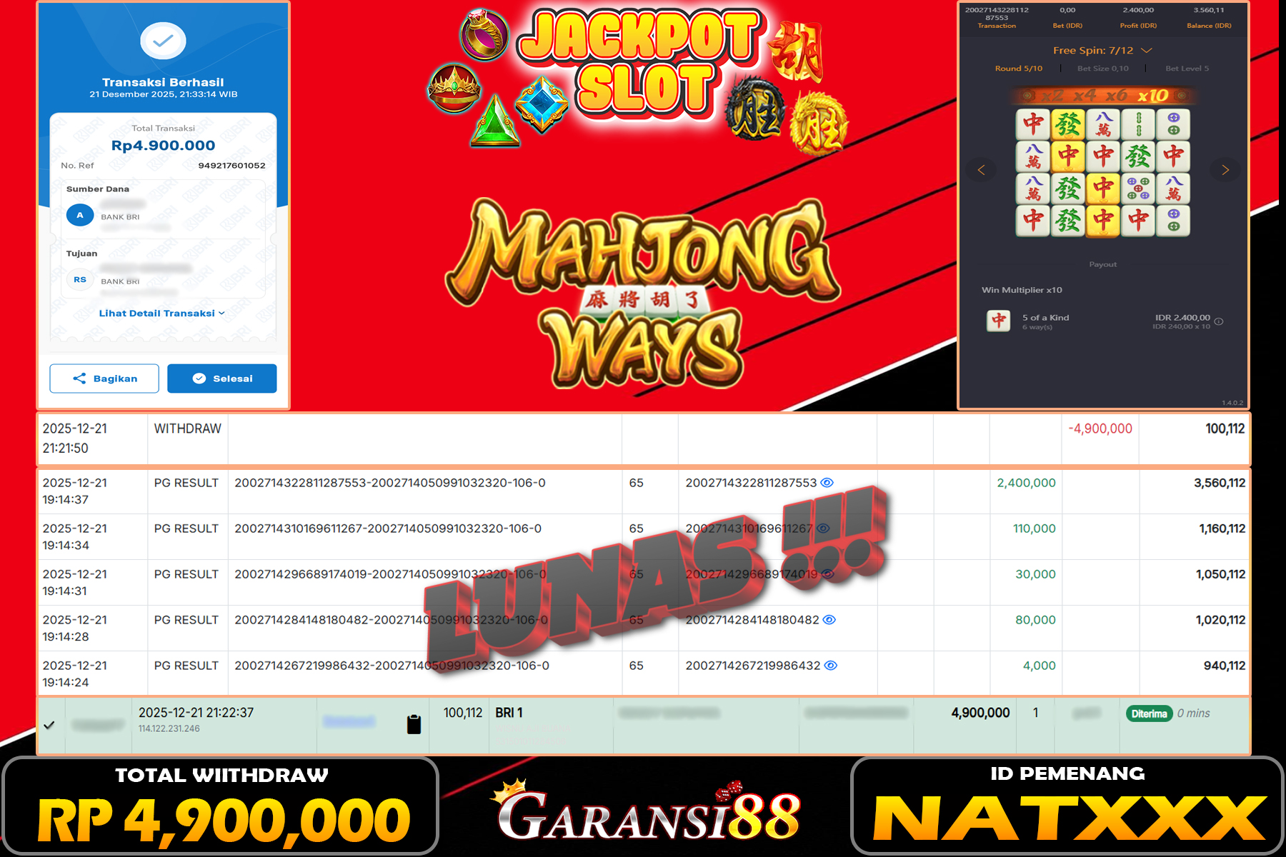 JACKPOT MAHJONG WAYS 21 DESEMBER 2025