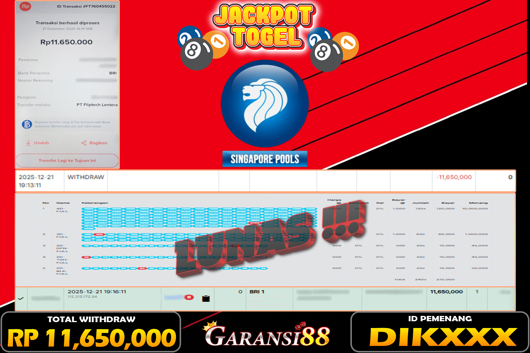 JACKPOT TOGEL SINGAPORE POOLS 21 DESEMBER 2025