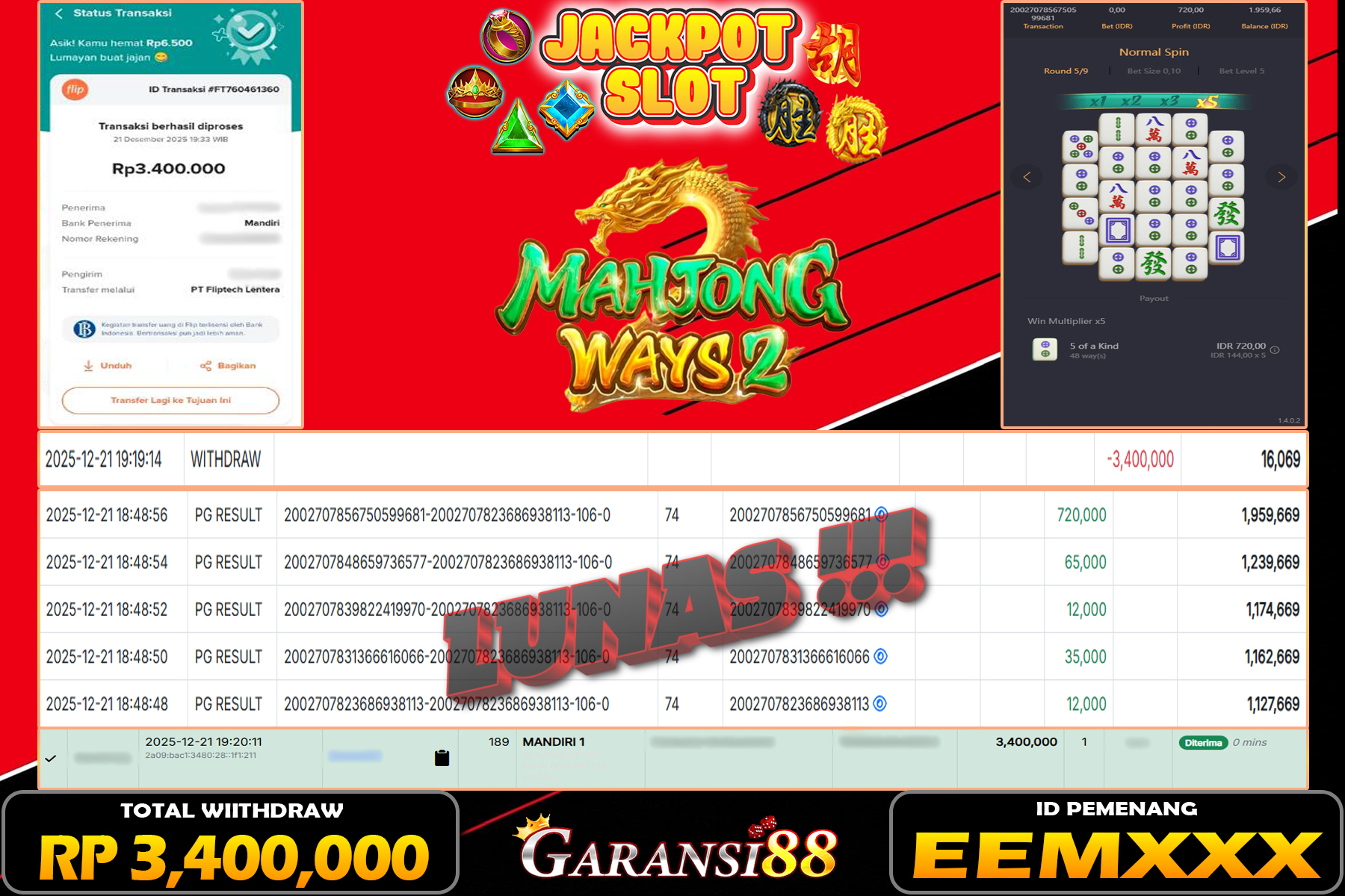 JACKPOT MAHJONG WAYS 2 21 DESEMBER 2025