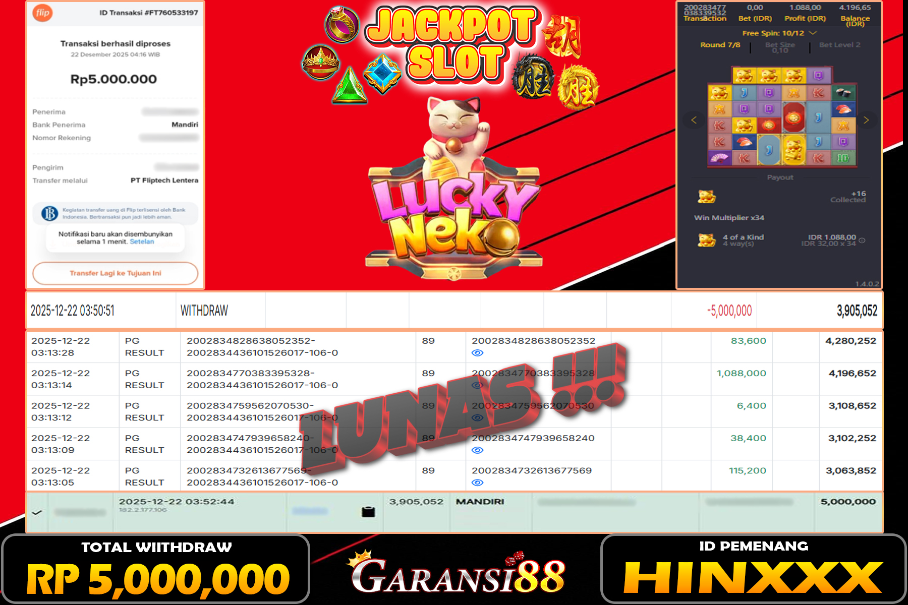 JACKPOT LUCKY NEKO 22 DESEMBER 2025