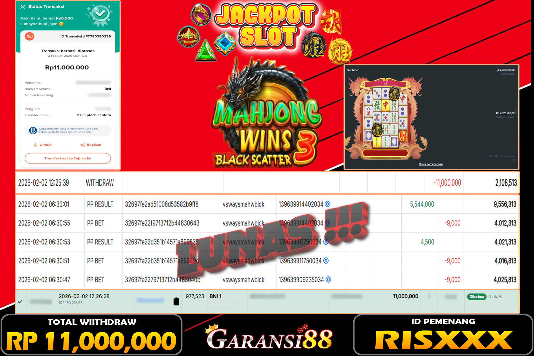 JACKPOT MAHJONG WINS BLACK SCATTER 3 2 FEBRUARI 2026