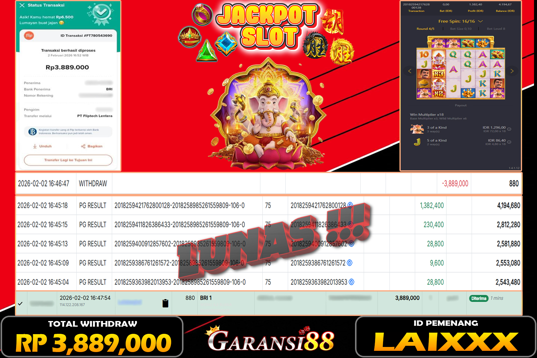 JACKPOT GANESHA FORTUNE 2 FEBRUARI 2026
