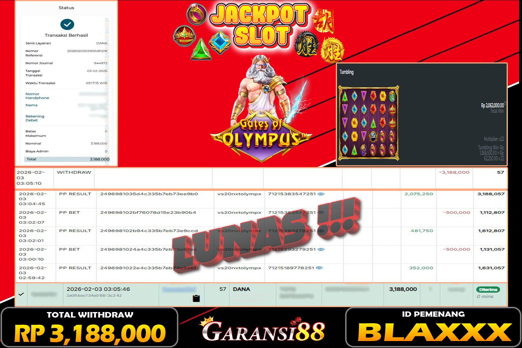 JACKPOT GATES OF OLYMPUS 3 FEBRUARI 2026