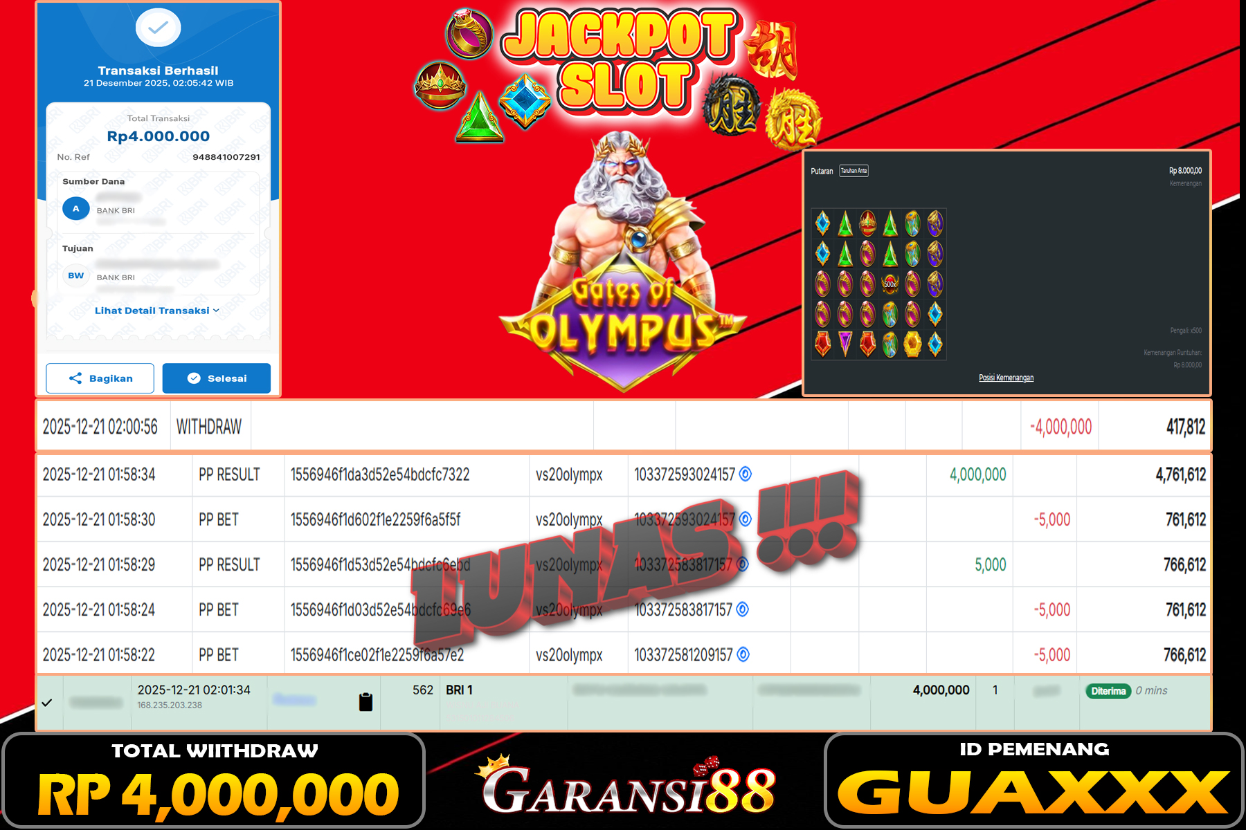 JACKPOT GATES OF OLYMPUS 21 DESEMBER 2025