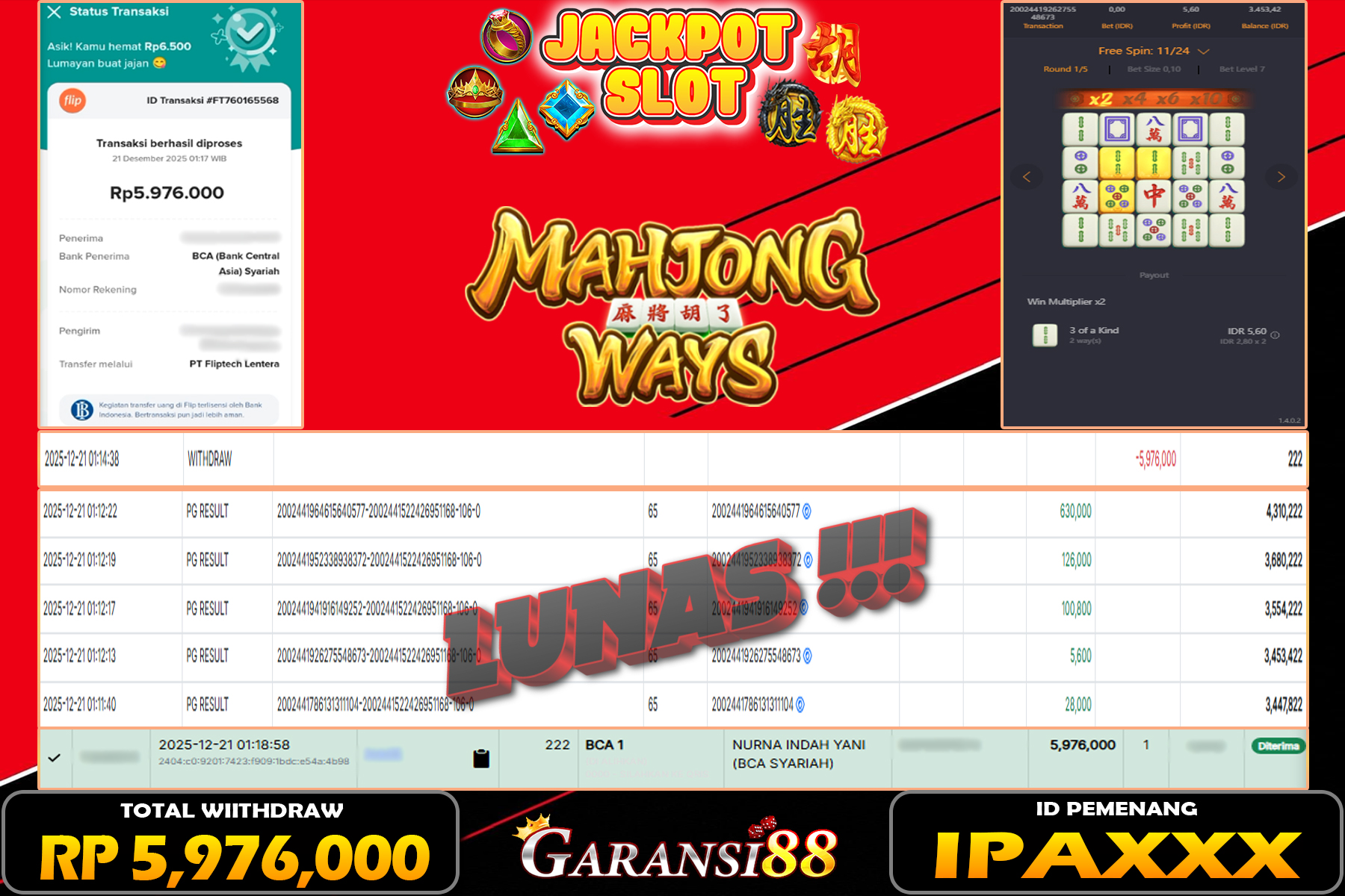 JACKPOT MAHJONG WAYS 2 21 DESEMBER 2025