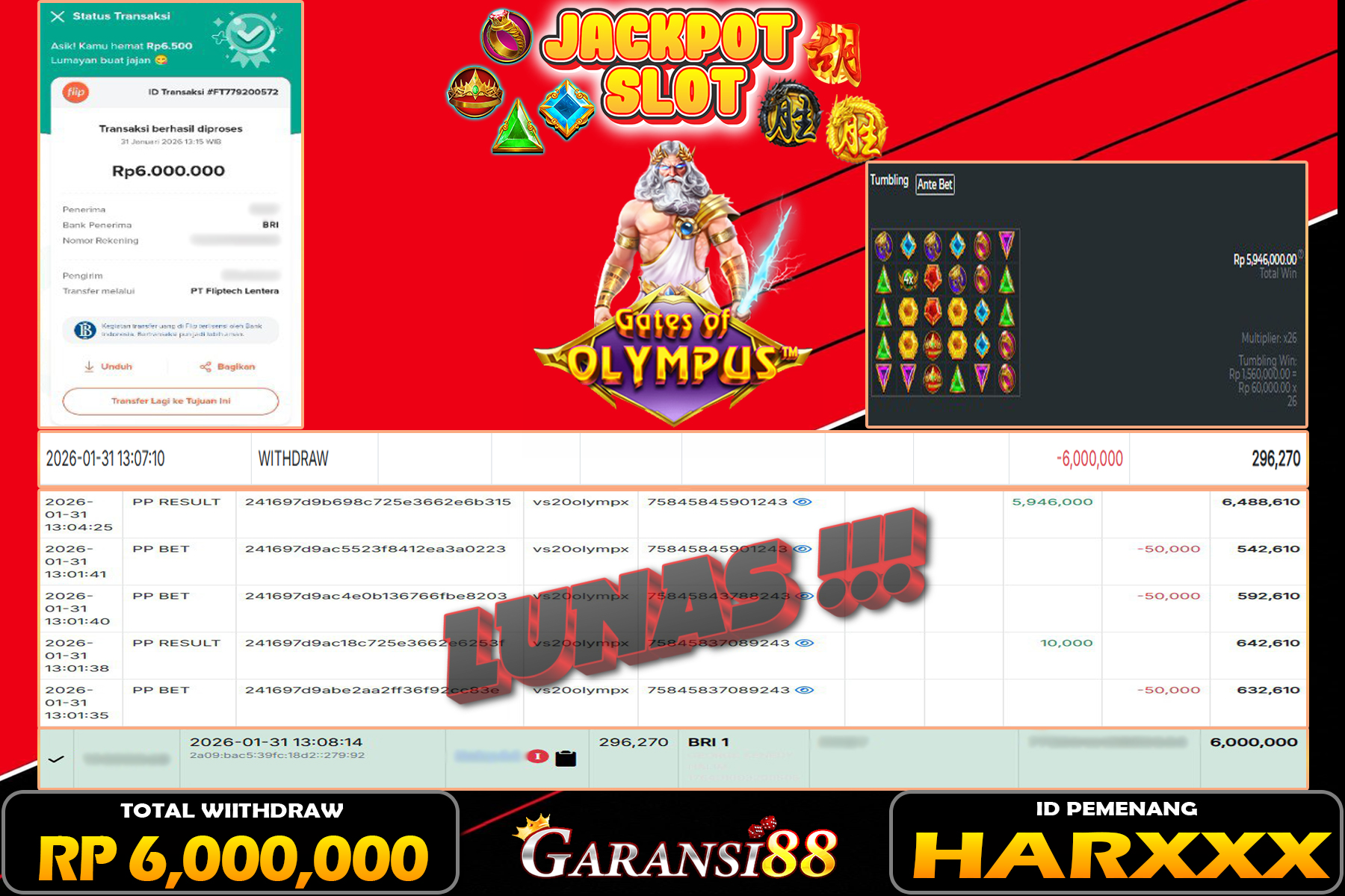 JACKPOT GATES OF OLYMPUS 31 JANUARI 2026