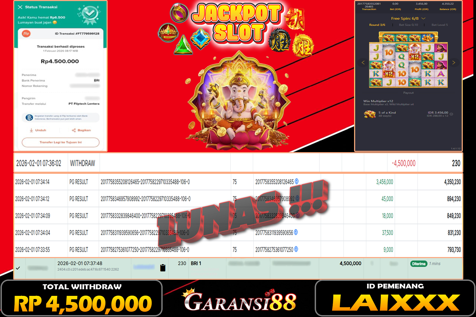 JACKPOT GANESHA FORTUNE 1 FEBRUARI 2026