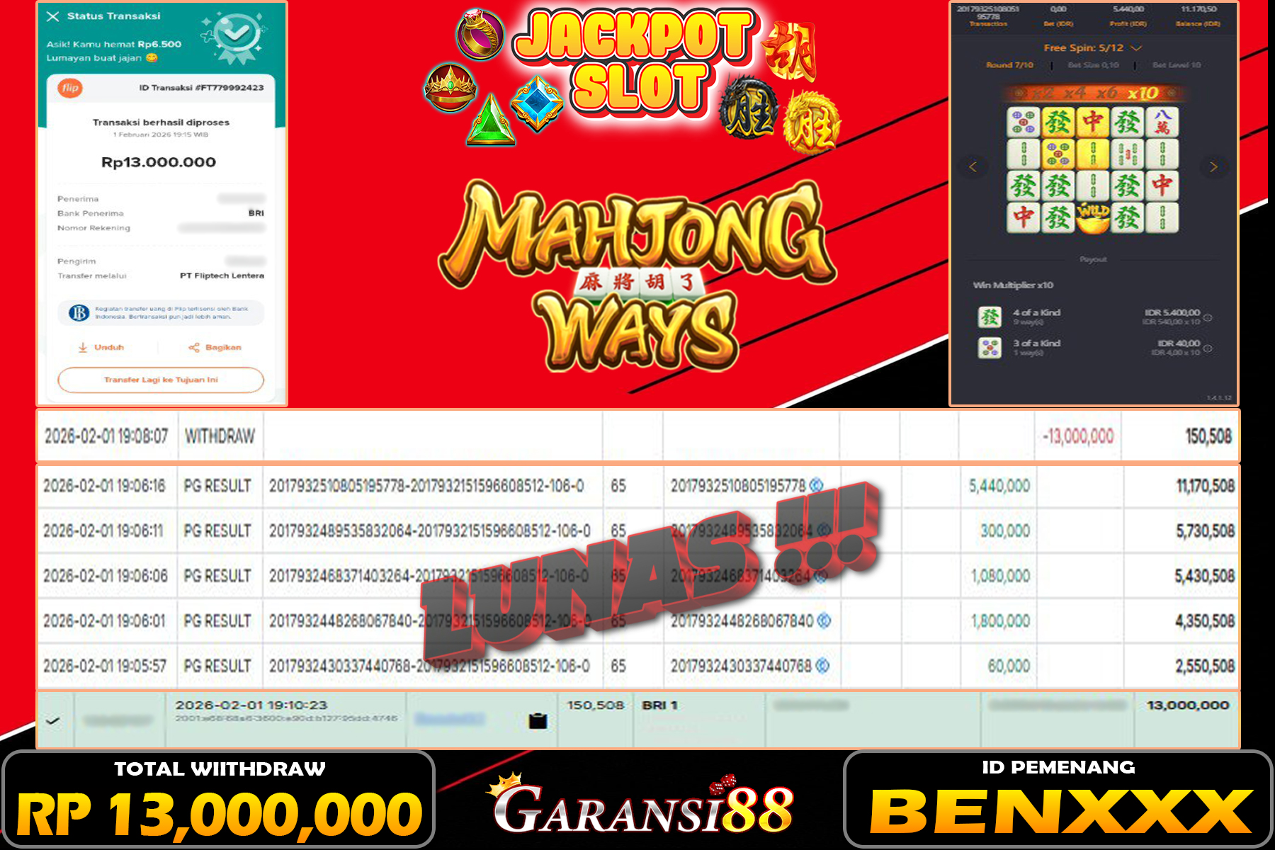 JACKPOT MAHJONG WAYS 1 FEBRUARI 2026
