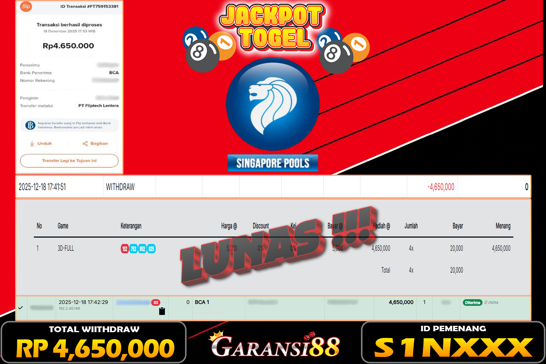 JACKPOT TOGEL SINGAPORE POOLS 18 DESEMBER 2025