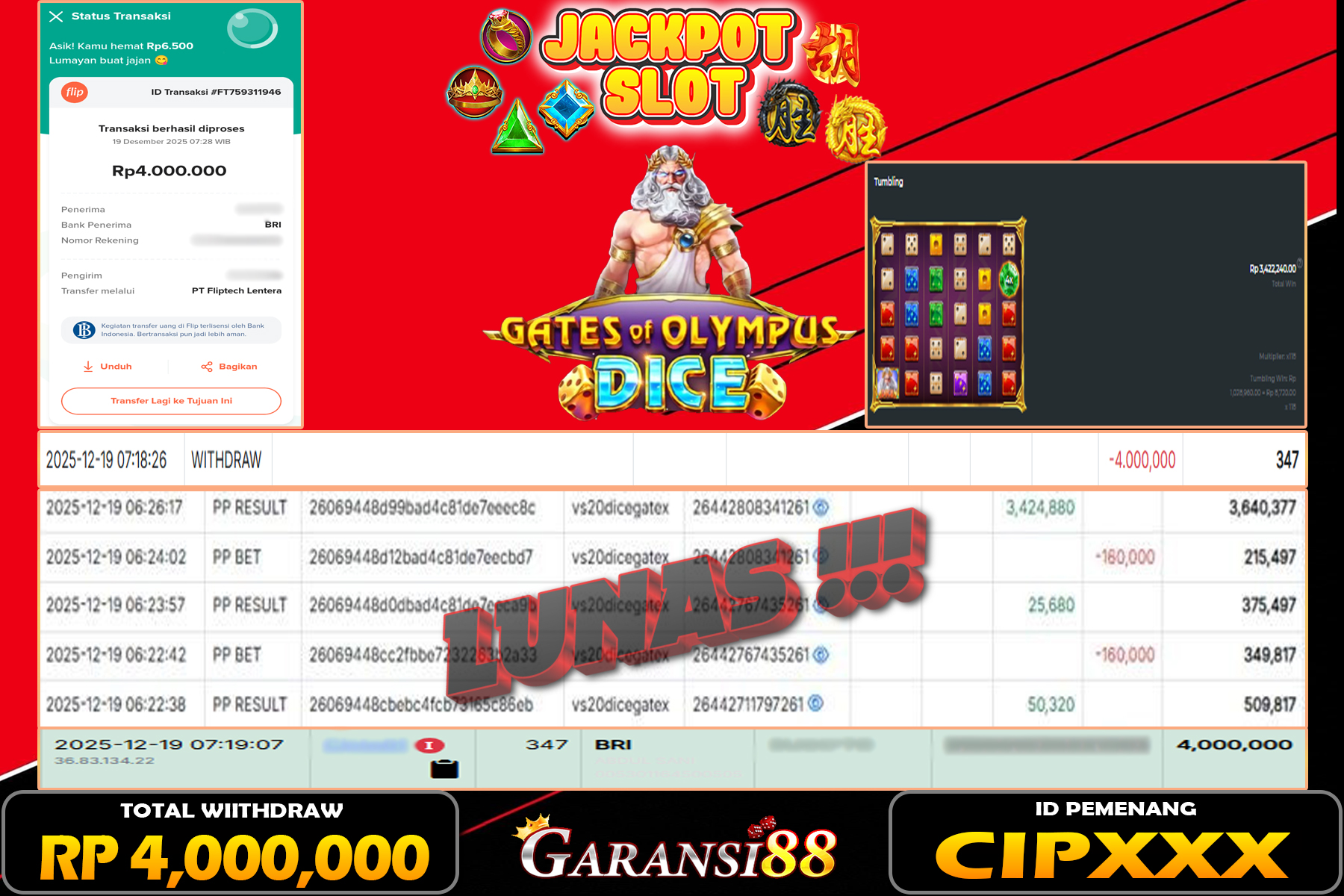 JACKPOT GATES OF OLYMPUS DICE 19 DESEMBER 2025