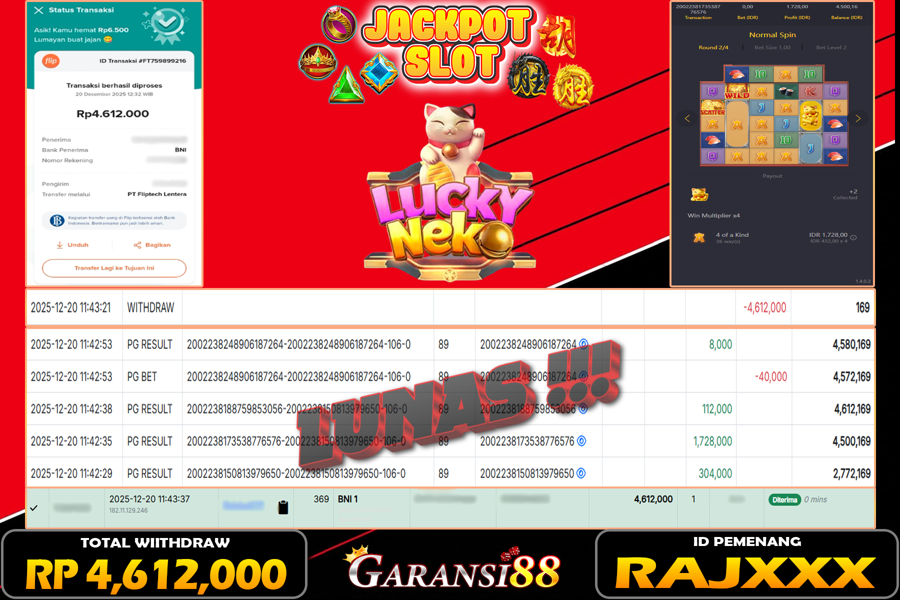 JACKPOT LUCKY NEKO 20 DESEMBER 2025