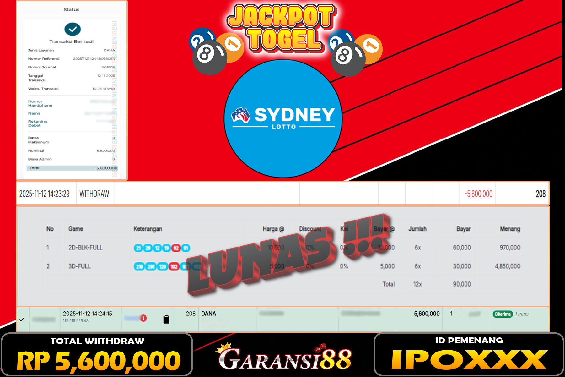 JACKPOT TOGEL SYDNEY LOTTO 12 NOVEMBER 2025