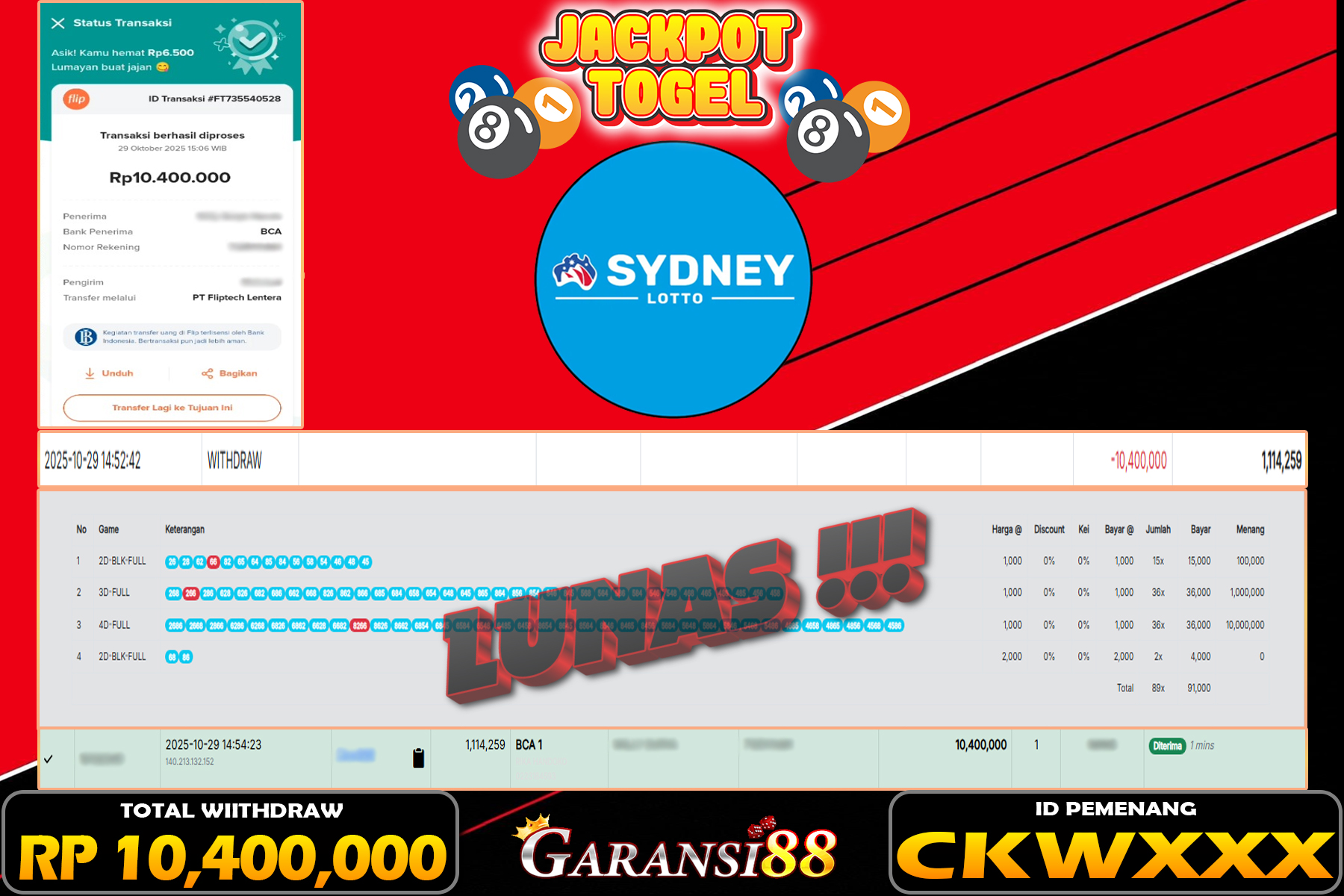 JACKPOT TOGEL SYDNEY LOTTO 29 OKTOBER 2025