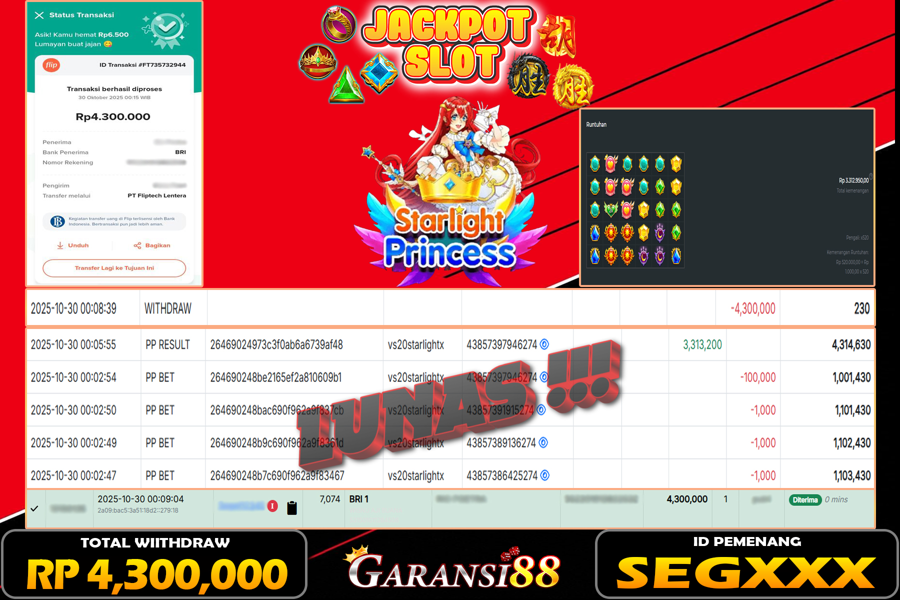 JACKPOT STARLIGHT PRINCESS 30 OKTOBER 2025