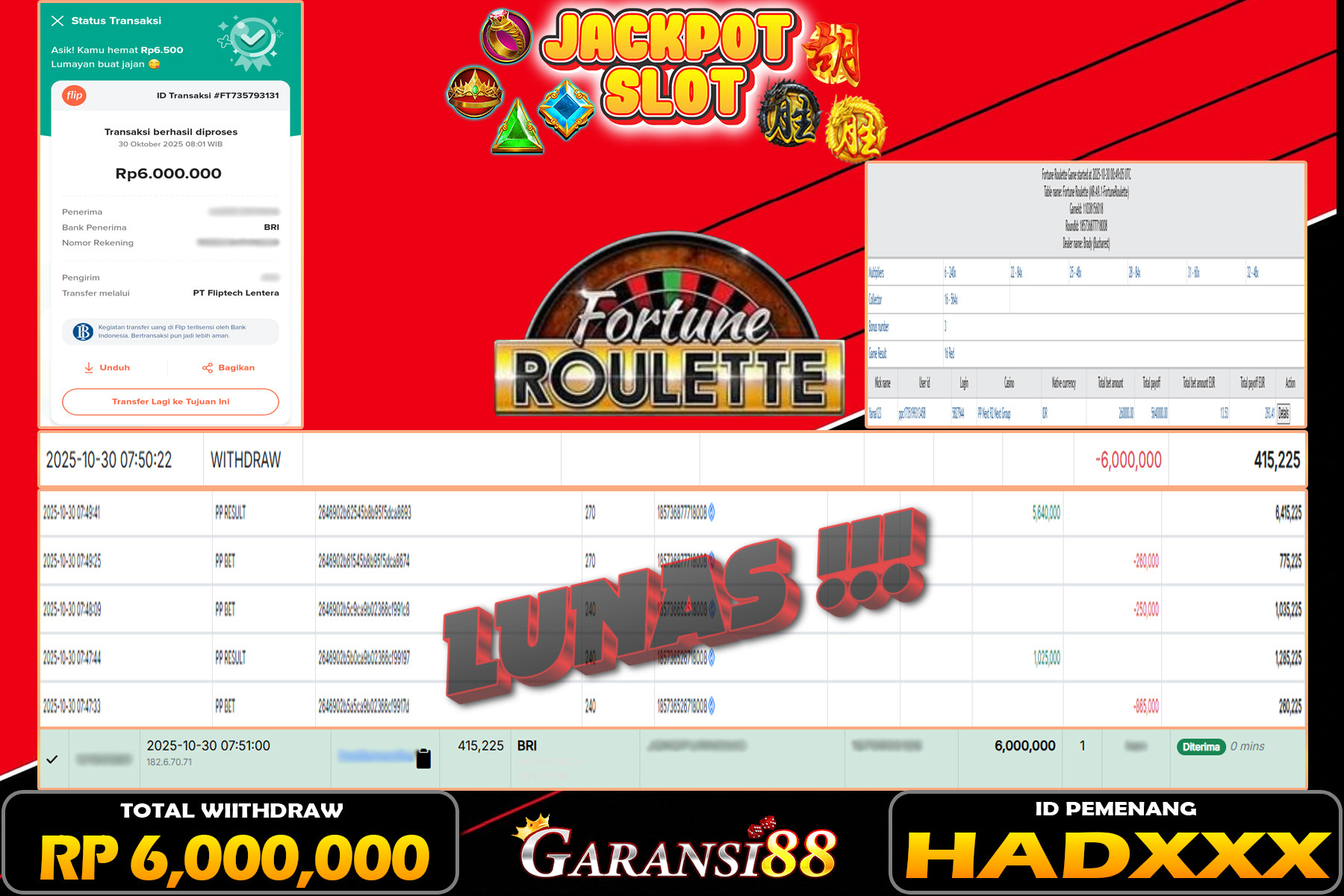 JACKPOT FOTUNE ROULETTE 30 OKTOBER 2025