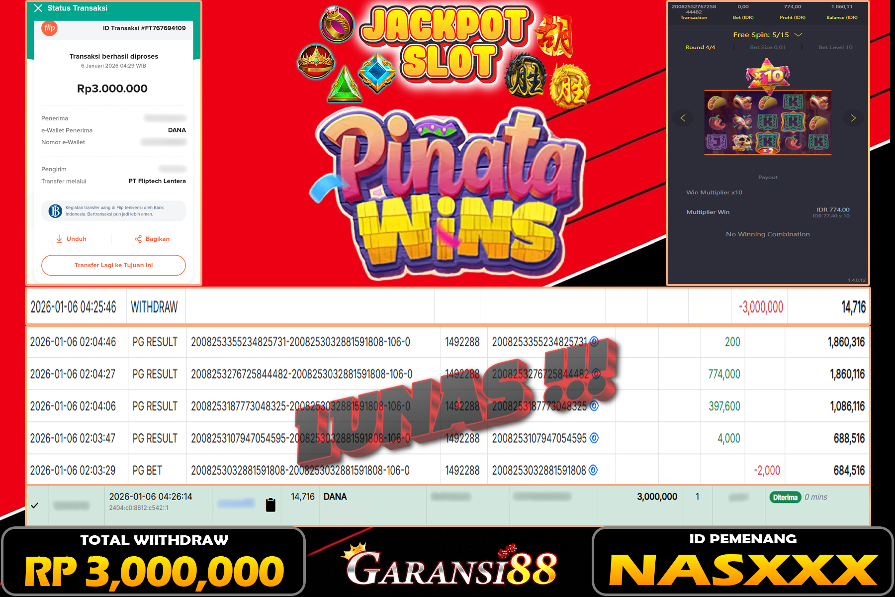 JACKPOT PINATA WINS 06 JANUARI 2026