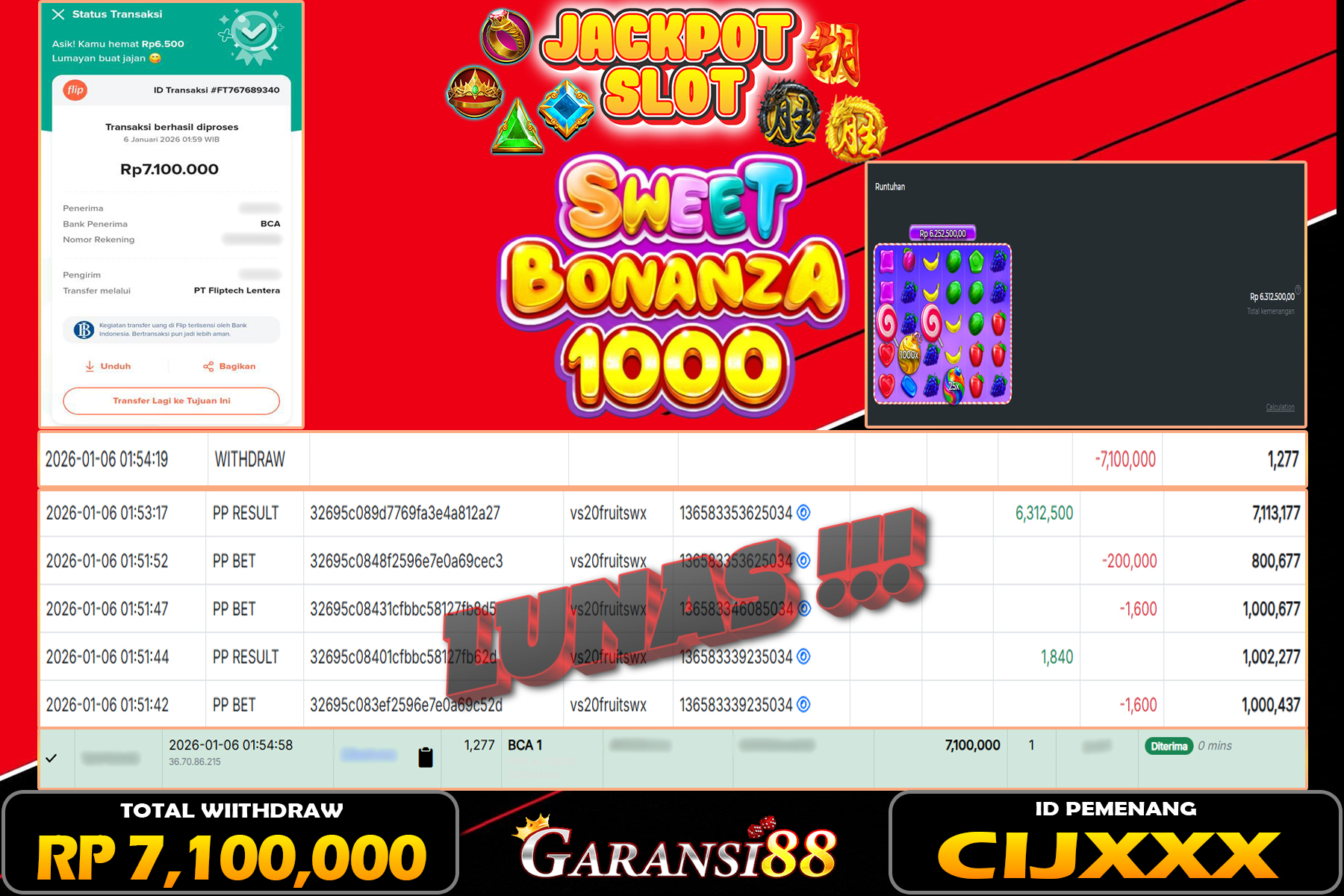 JACKPOT SWEET BONANZA 1000 06 JANUARI 2026