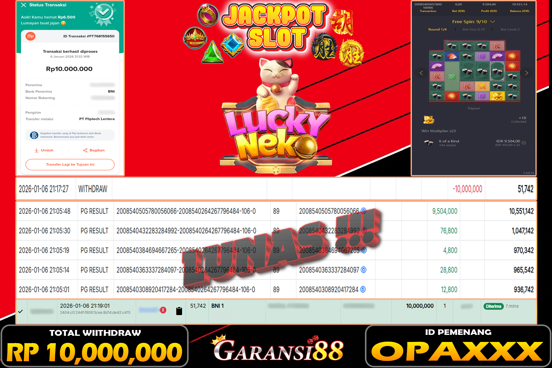 JACKPOT LUCKY NEKO 06 JANUARI 2026